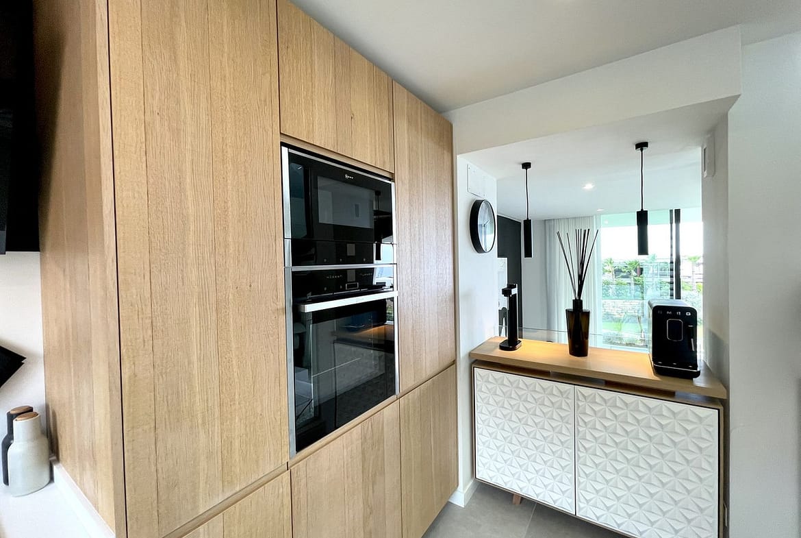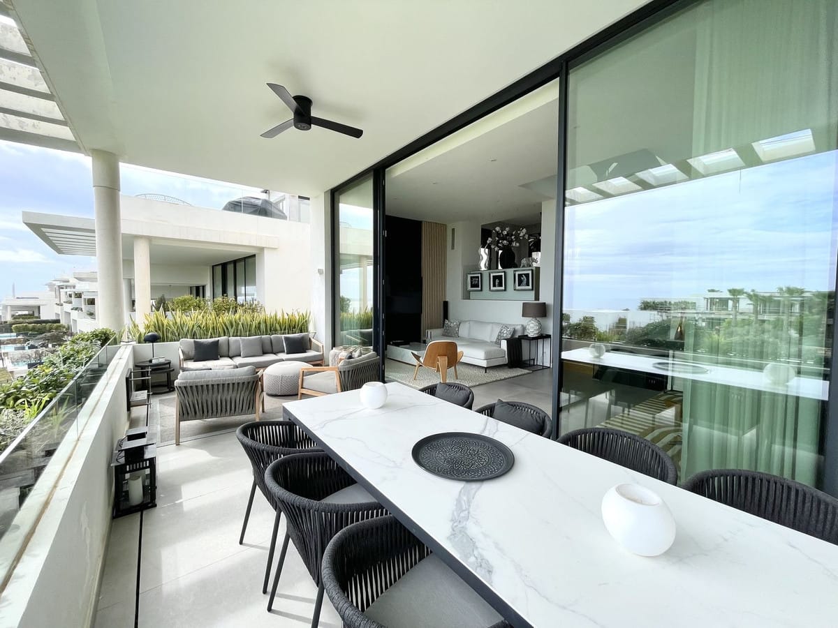 The Cape is an innovative residential project in Cabopino. This seaside wonder is located in the municipality of Marbella (Malaga), one of the most beautiful spots on Costa del Sol. The house is situated in a frontline golf, has 3 bedrooms all with en-suites and powder room, spacious terrace offers wonderful views of the Mediterranean Sea. There is a private swimming pool with sun terrace as well as private garden to enjoy the brightness of the region. The living room is designed to ensure wellbeing and offers ease and elegance with the hight of the ceiling of 3.60 metres.The architectural feature offers a very spacious and luminous space with stunning sea views to guarantee you a place of repose and leisure where to enjoy one of the most privileged areas of the world. The kitchen has been perfectly equipped with appliances NEFF, a brand that specializes in state of the art build-in kitchen appliances, Porcelanosa flooring, bathrooms and kitchen countertop with one piece integrated sink and top of the line faucets.Many upgrades have been done, extension of the master bedroom, laundry room with integrated sink and top of the line washer/dryer, exclusive lighting design, luxury automated window covering, wood paneling in the living room and bedroom, privacy glass curtain installed on the terrace separation, kitchen cabinets upgraded, tiled front porch, outdoor faucets installed, electric car charger installed next to the parking spot, energy efficient climate control by Aerotermia Daikin, in-floor heating through out the house.Must see to appreciate everything that this house has to offer.
