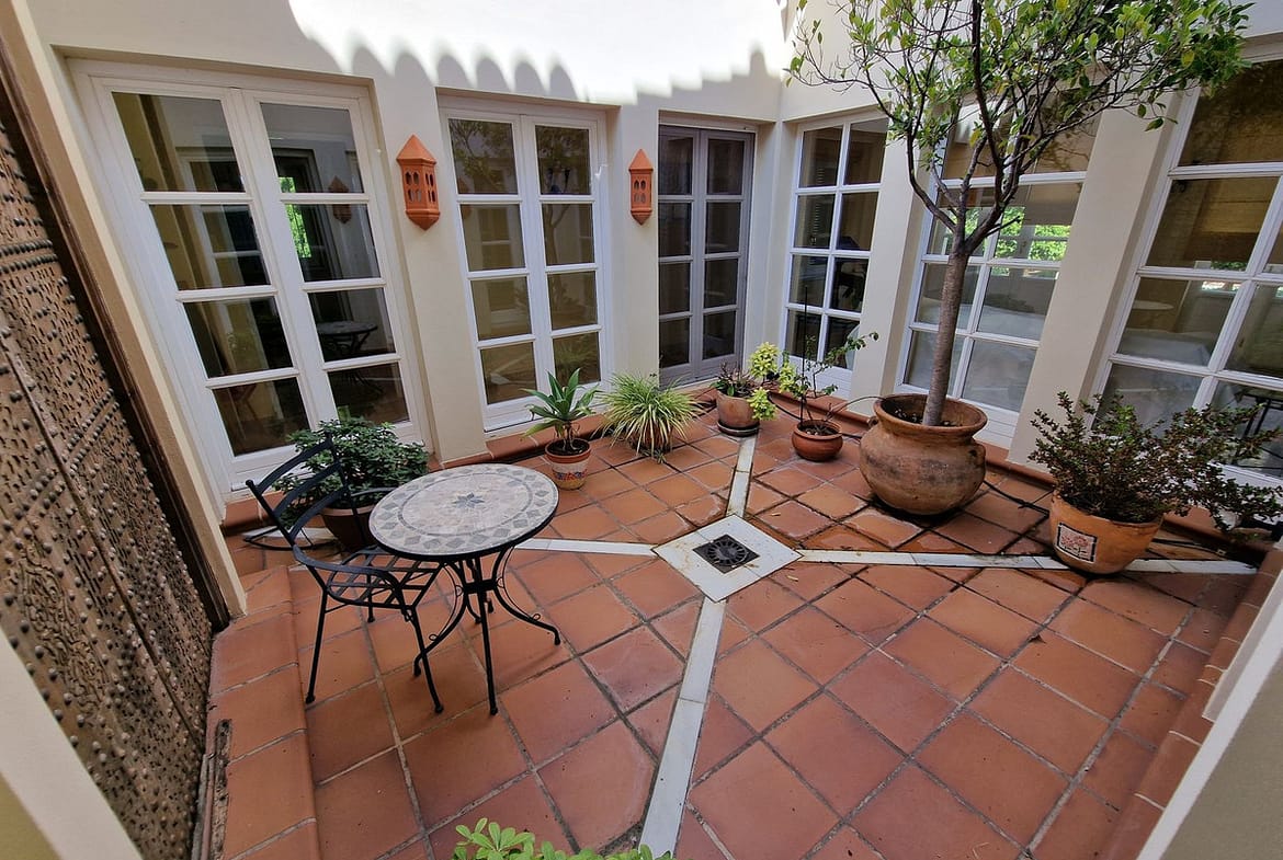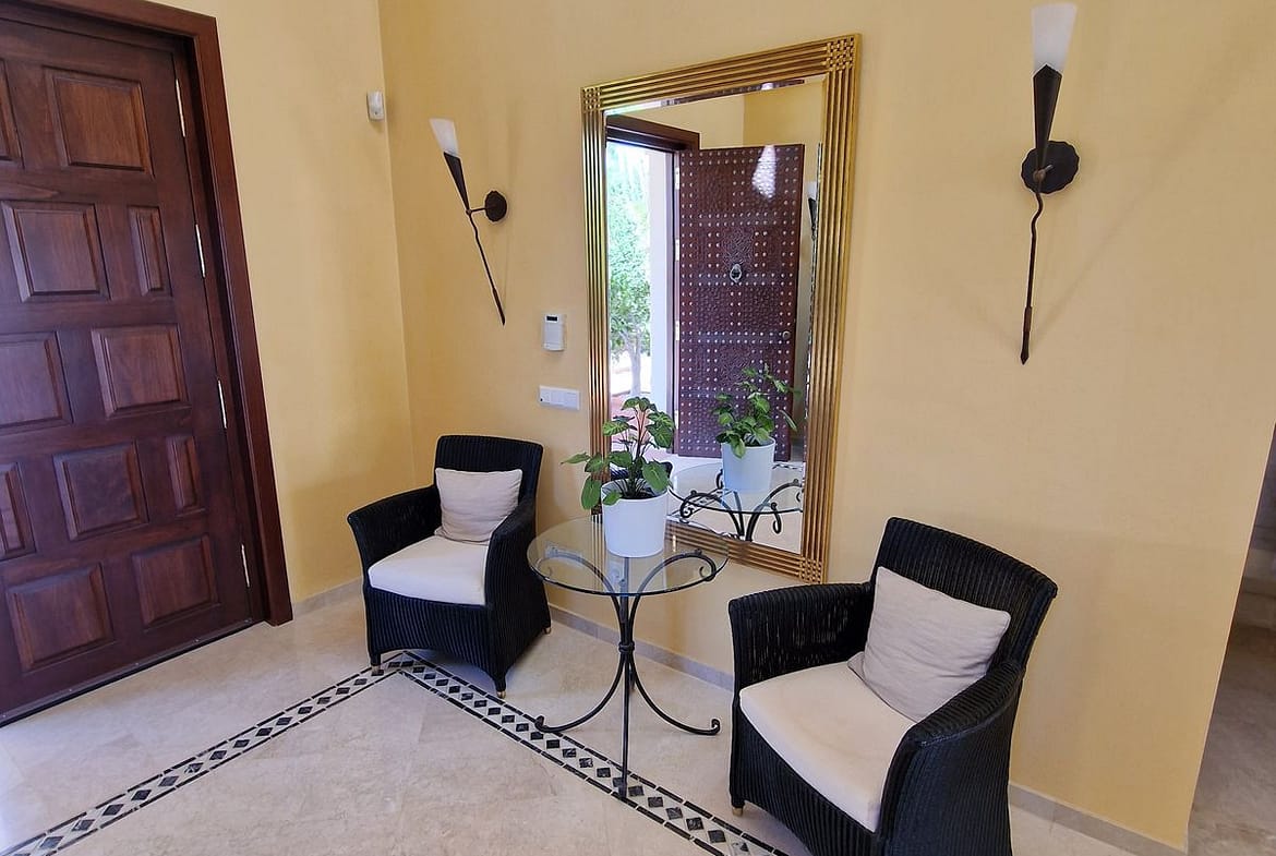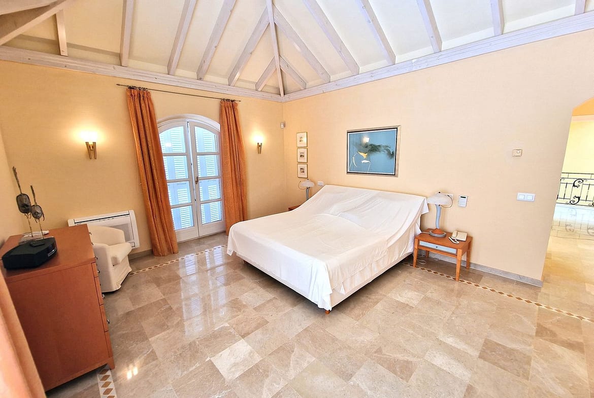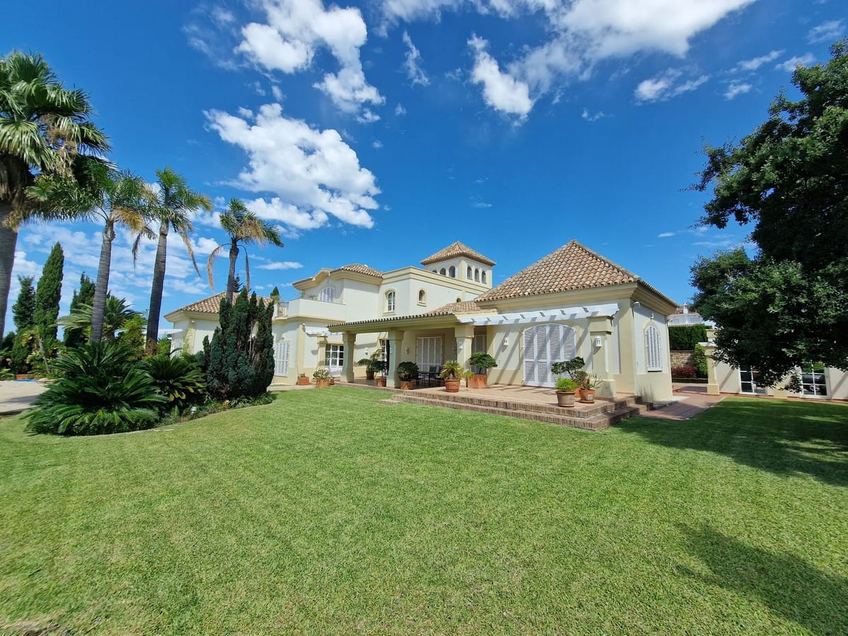 This villa is in a prime location in Calahonda, Mijas Costa, just 20 minutes from Marbella city center and just 30 minutes from Málaga city and the airport. Only 5minutes from the beach. Directly adjacent to a green zone, you can enjoy the unobstructed view of the sea and the African coast. The villa, built in a modern Andalusian style, is located on a plot with a total of 4,162m2 and has a built area of 771m2. The well-kept Mediterranean garden with old cork oaks and a small pine grove as well as a spacious private pool offers varied opportunities for leisure activities on different levels. A special property in a perfect and very private location!