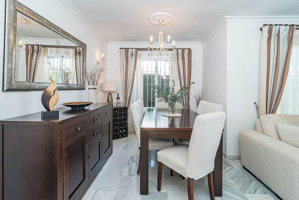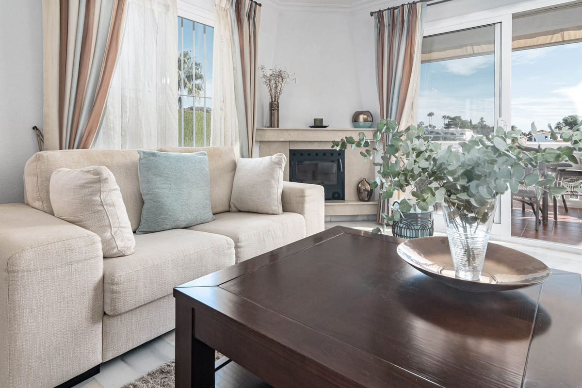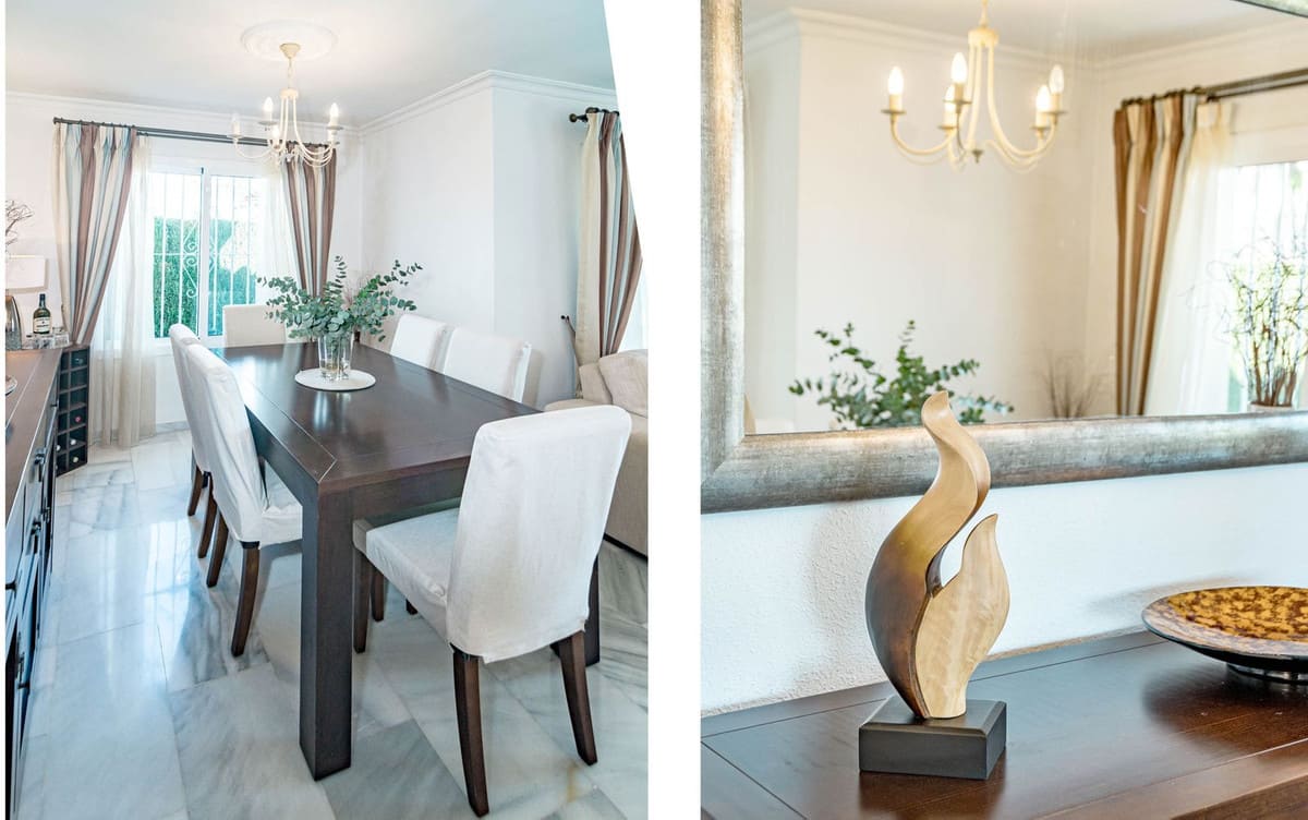 This is a detached villa in a small and quiet community of 9 independent houses. Located in the residential and green area of Jardines de Calahonda, bordering the Cabopino golf course.