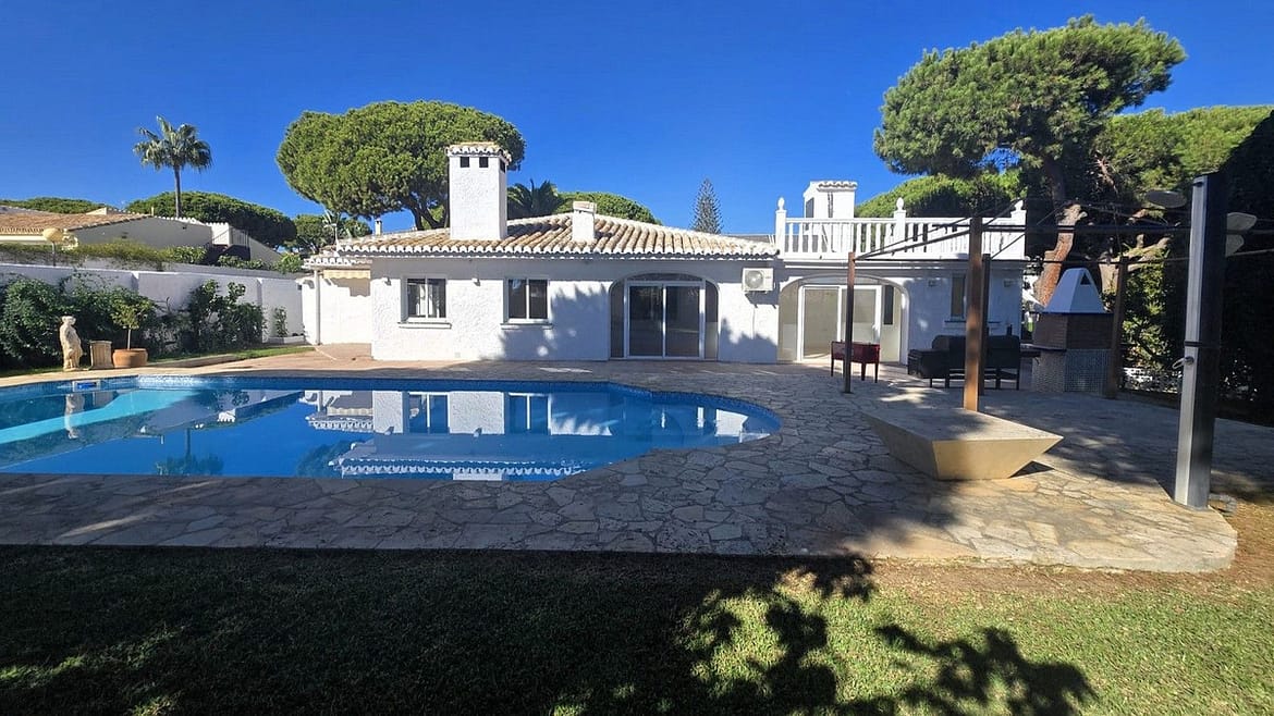 Immediate viewings available now. Stunning villa for long-term rental in lower Calahonda. Ideally located close to all amenities and just 6 minutes from the beach. Features include a beautifully landscaped, mature private garden with fruit trees and a swimming pool. The property offers three bedrooms and three full bathrooms, one of which includes a walk-in shower. Additional amenities include ample storage space, a utility room, a log burner, parking for up to five vehicles, a garage, private terraces, and sea views from the roof terrace. This property is expected to be highly sought after, so schedule your viewing today. Available unfurnished at €3,850 per month. References required and proof of income.