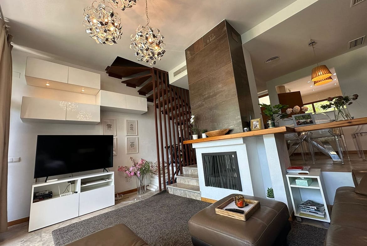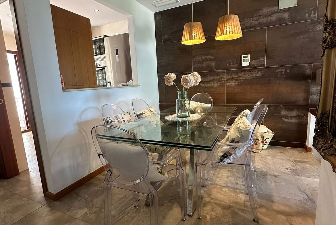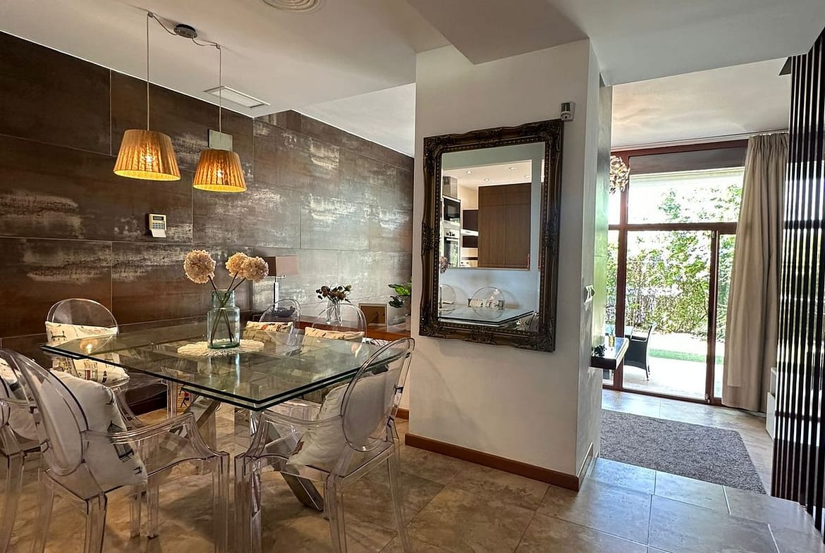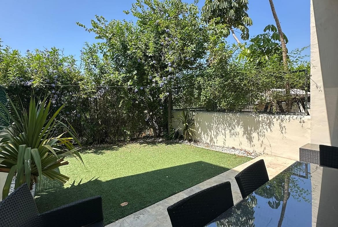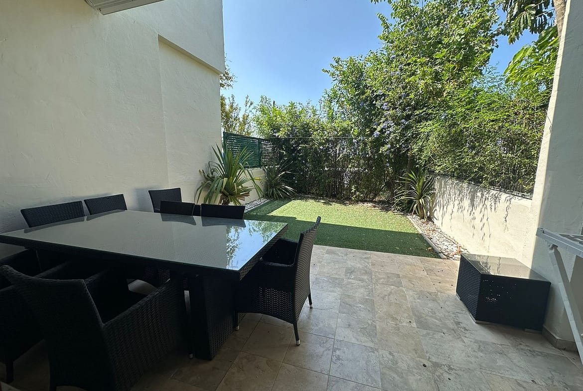 This turnkey ready & fully furnished, townhouse with spacios interiours offers 3 generously-sized bedrooms and 2 contemporary bathrooms, plus a convenient guest toilet. Large windows fill the living area with natural light. The fully fitted kitchen flows seamlessly into the lounge. Enjoy the private garden, and covered terrace with suncreen for al fresco meals. The rooftop solarium offers great potential.
