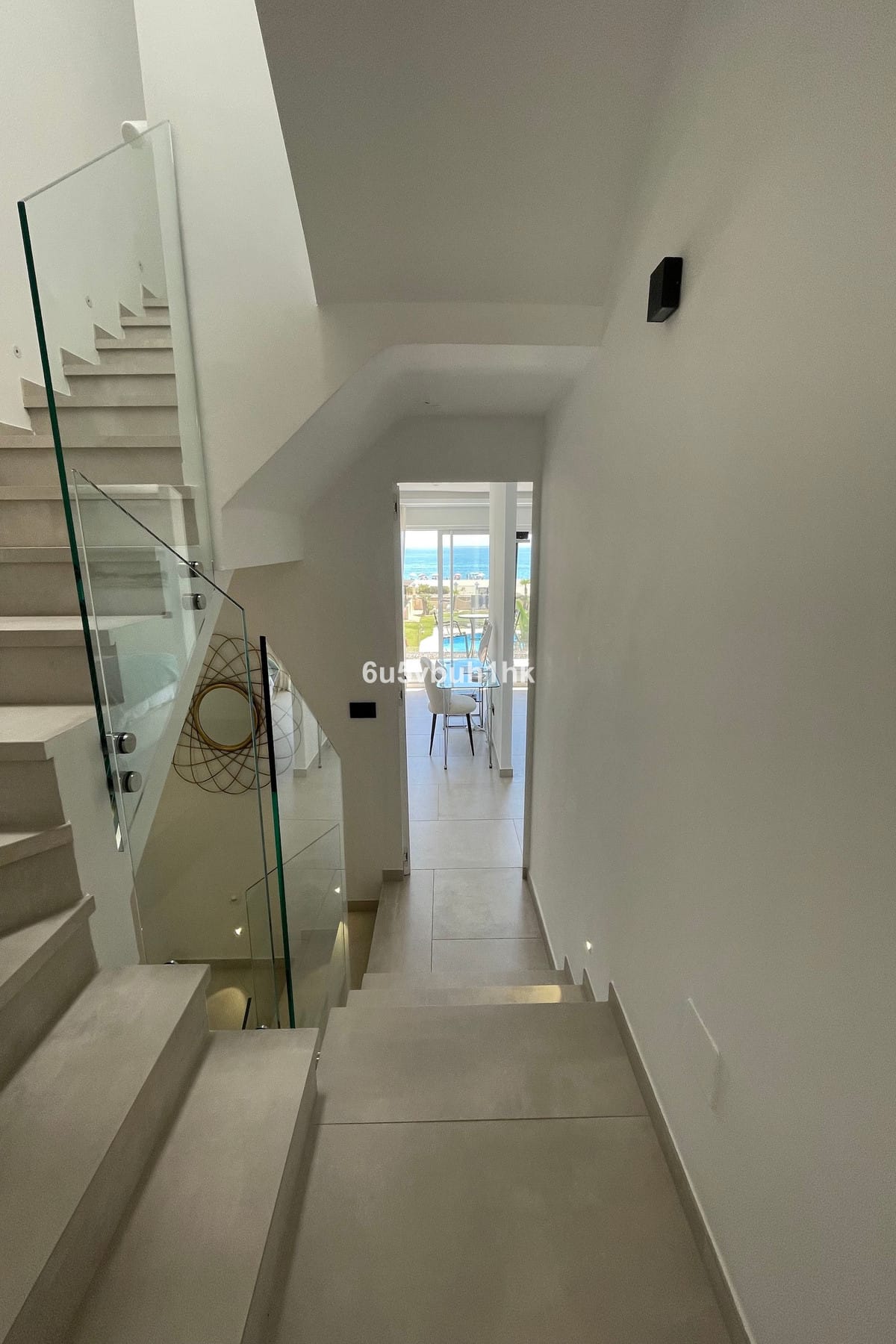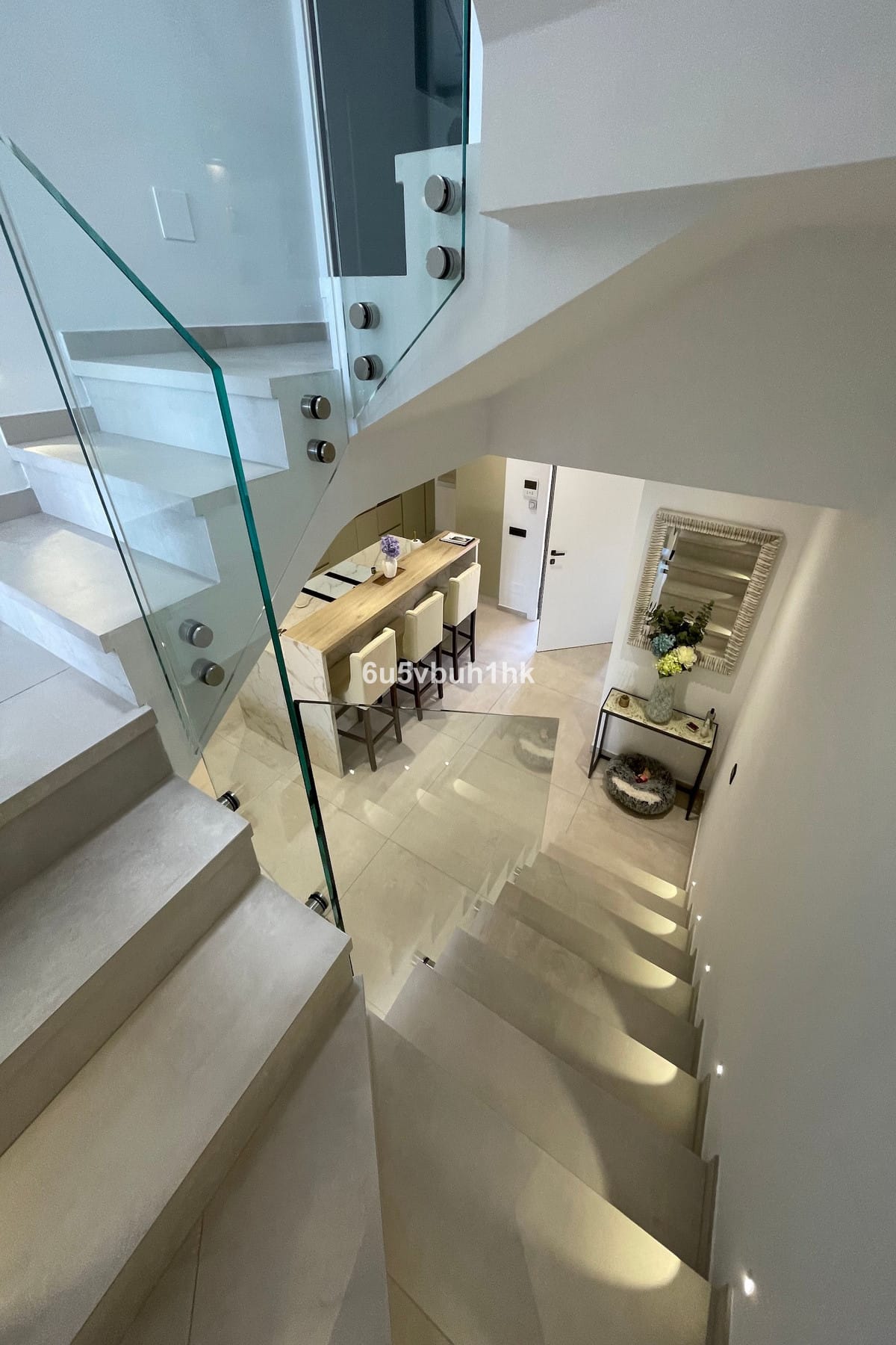 Discover this immaculate townhouse in the serene village of El Secadero, part of the picturesque Casares municipality in Málaga on the sun-drenched Costa del Sol—a tranquil inland haven blending rural Andalusian charm with modern convenience. Nestled amid lush countryside and olive groves, this location offers a peaceful escape yet is just a 10-15 minute drive from pristine beaches like Playa de Sabinillas, world-class golf courses such as Doña Julia and Casares Golf, and vibrant towns including Estepona's flower-adorned old town or Sotogrande's upscale marina. Everyday amenities abound nearby: supermarkets (like Mercadona in San Luis de Sabinillas), schools, pharmacies, and restaurants, with easy A-7 access to Marbella or Gibraltar for urban excursions. Embrace over 300 sunny days a year in this expat-friendly area, ideal for families seeking affordability and natural beauty away from the coastal crowds.