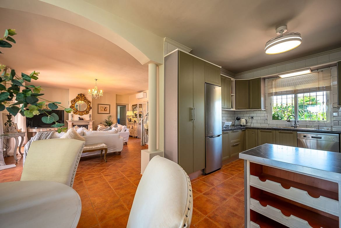 Beautiful detached villa in the outskirts of Coín set on a generous plot with a private pool and landscaped gardens, perfect for enjoying the Mediterranean lifestyle. Originally designed with 3 bedrooms, the property now offers 2 spacious bedrooms: one on the ground floor and an impressive master suite upstairs with a private terrace boasting stunning open views towards Mijas and Alhaurín El Grande.