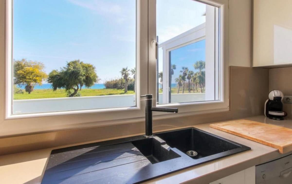 Bright and stylish interiors open onto a large terrace with panoramic sea views – the ideal spot to relax and watch the sunset. The heated pool allows you to swim any season, while the golden sandy beach is just steps from your door.