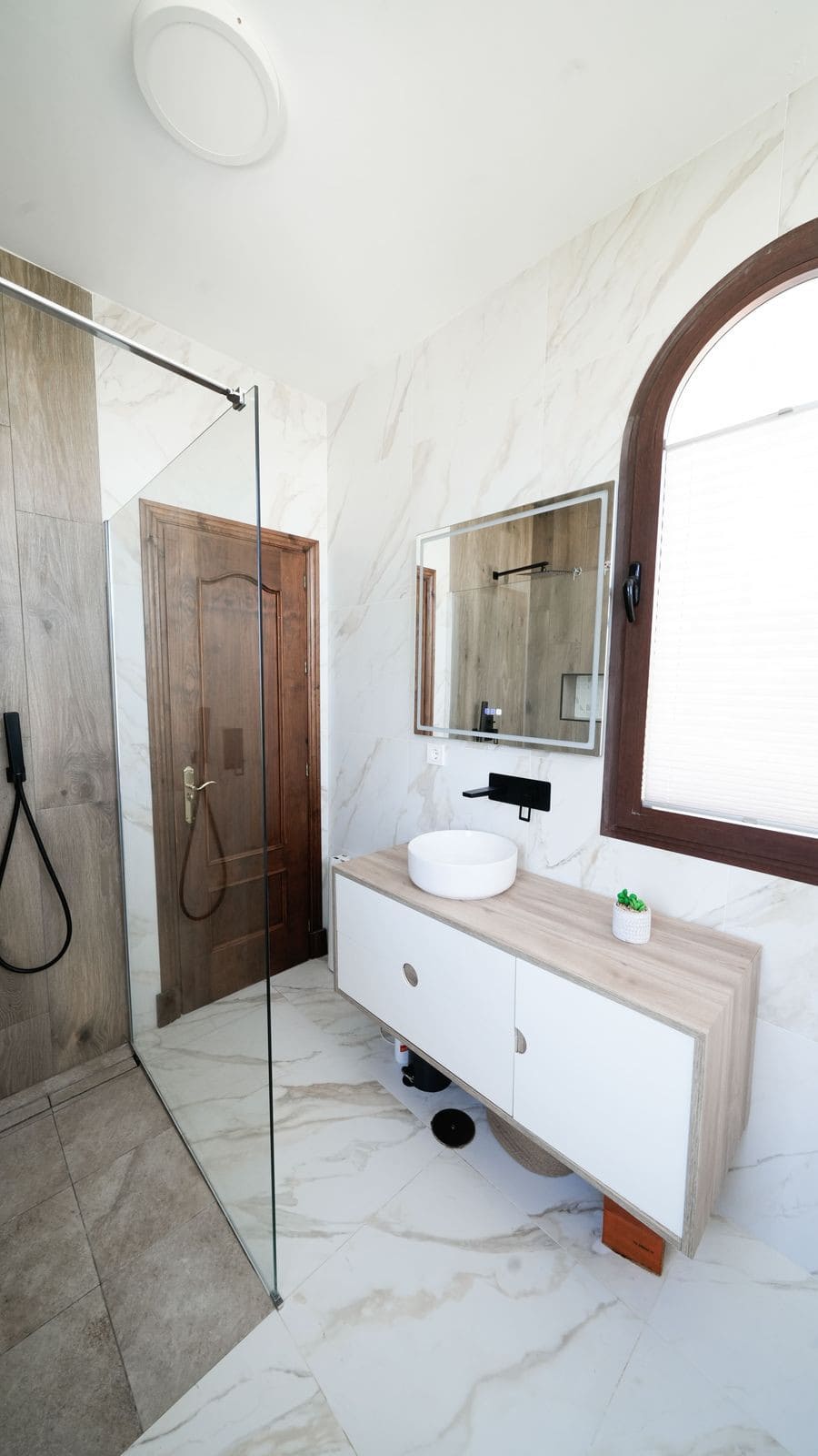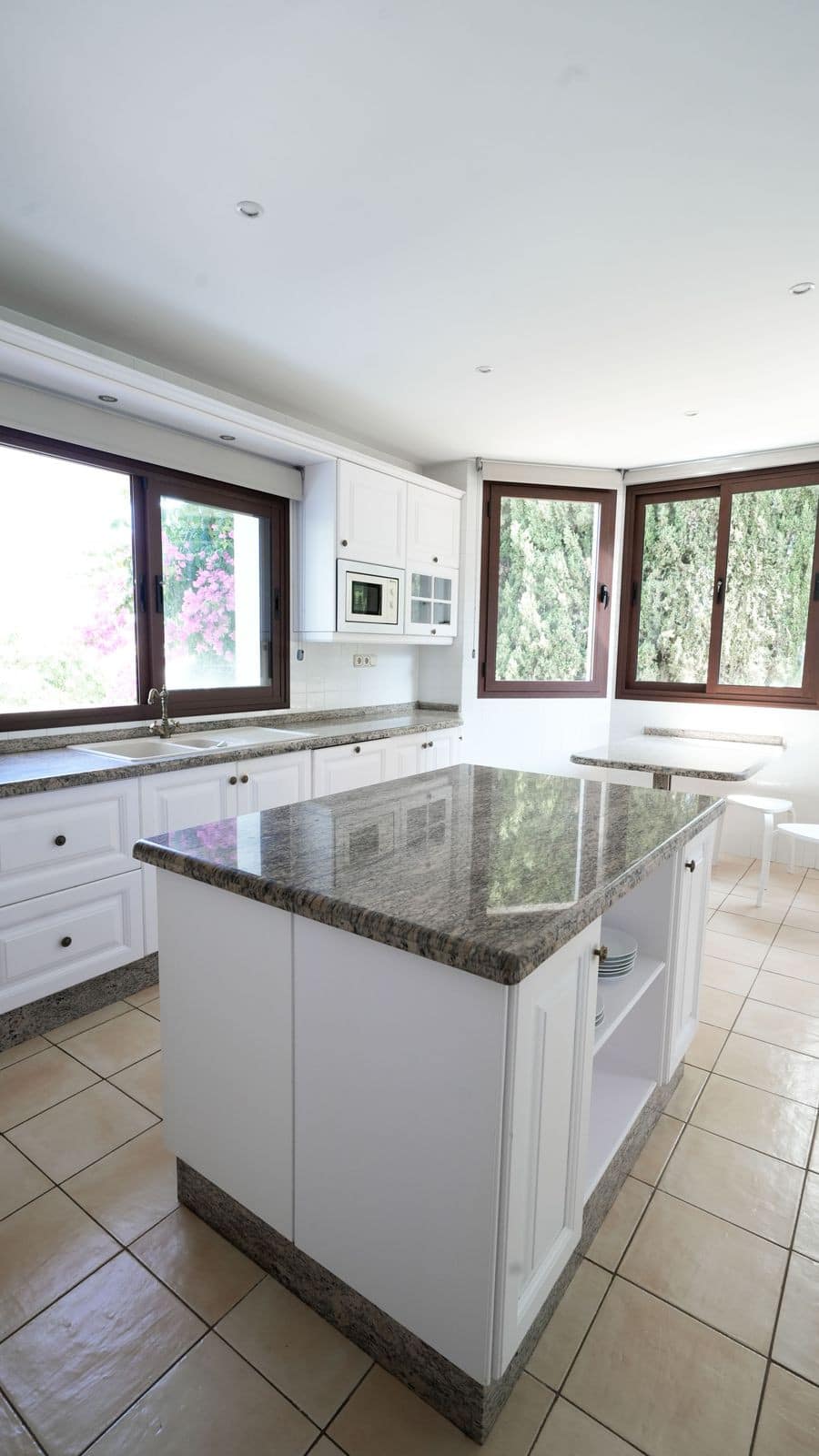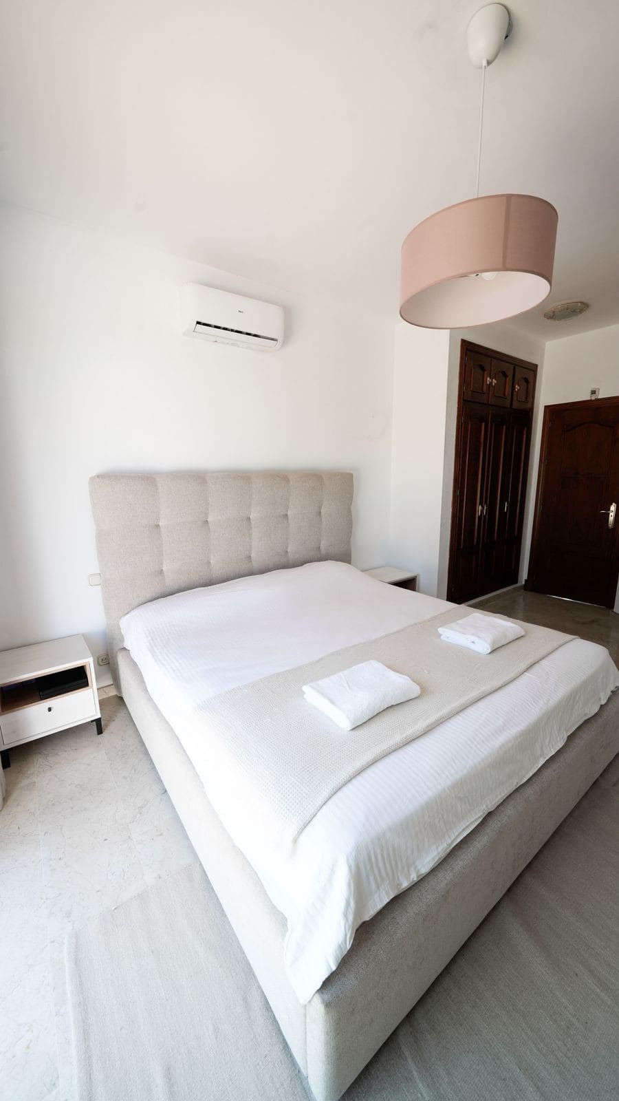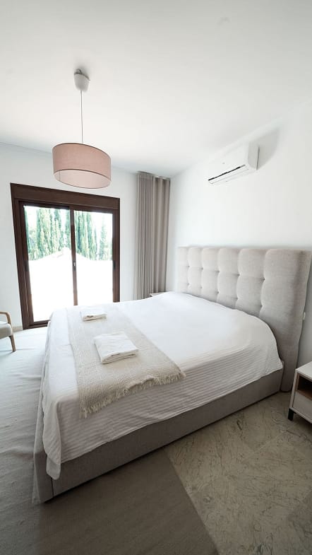 Upstairs, the entire upper floor is dedicated to the principal suite. This luxurious bedroom boasts an en-suite bathroom and direct access to a private terrace with serene views of the surrounding mountains—a perfect spot to relax and unwind.