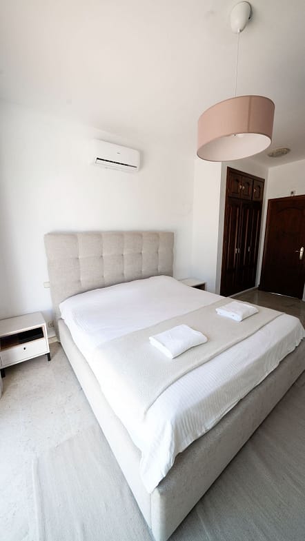 The ground floor features a bright and spacious living room, a large fully equipped kitchen, and an elegant entrance hall with a grand staircase. Two well-sized bedrooms are located on this level, along with two modern bathrooms and a guest toilet—making it ideal for guests or family members seeking ground-level convenience.