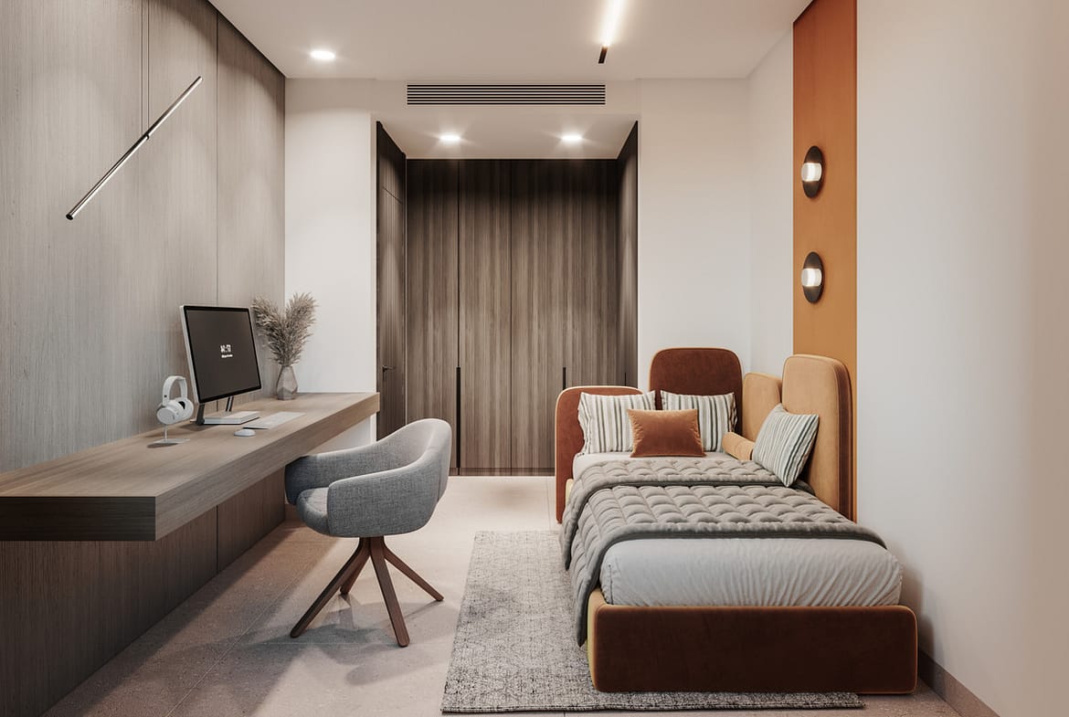 Each townhome is distributed over four levels and features a private glass-door elevator providing direct access to all floors. Spacious terraces include the option of a jacuzzi, outdoor kitchen with barbecue, and dedicated areas for outdoor dining and relaxation, creating seamless indoor–outdoor living.