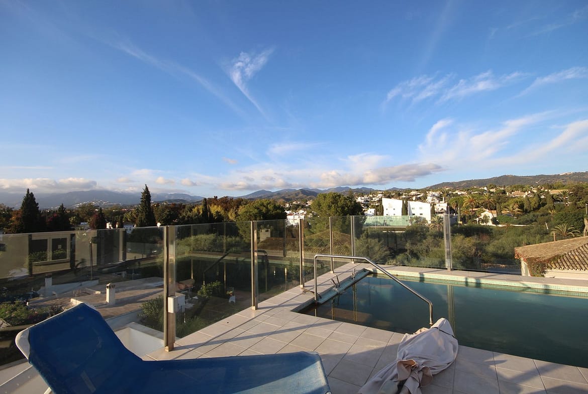 On the third floor, a large terrace with beautiful views of La Concha de Marbella, swimming pool and chill area.