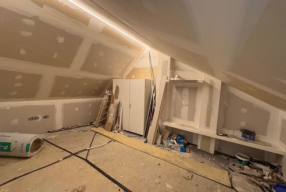 The upper floor, with approximately 35 m², is currently unfinished and offers excellent potential to be converted into an additional bedroom, a home office, or an entertainment space, depending on personal needs.