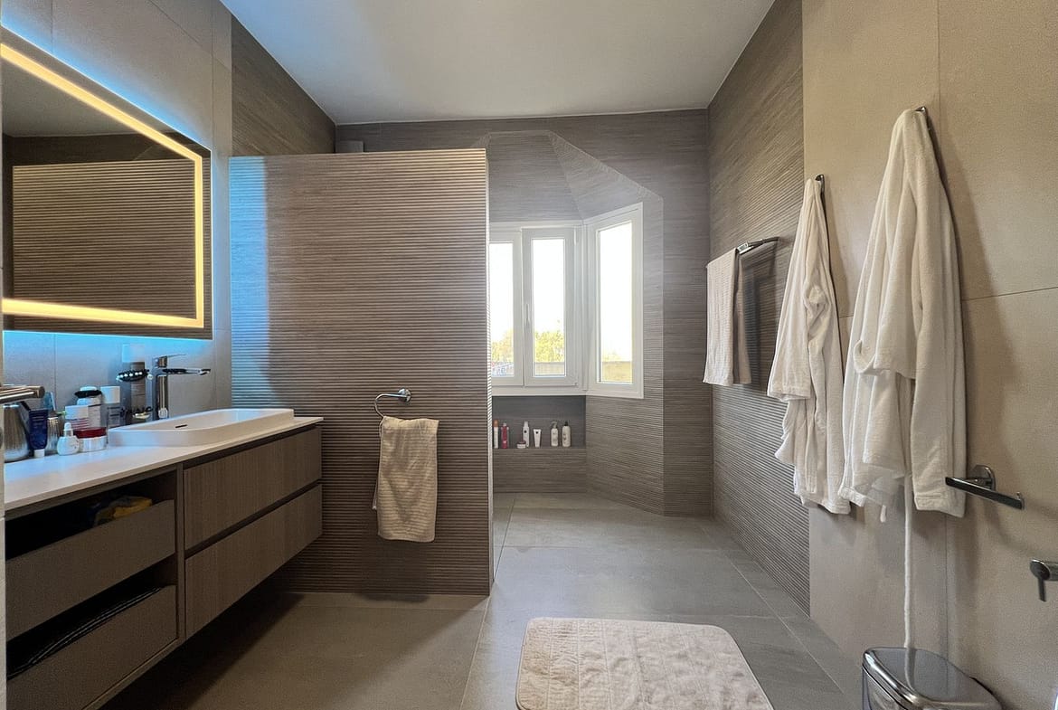 The home features 3 spacious bedrooms and 3 completely new bathrooms, along with new interior and exterior carpentry, providing a modern and elegant style throughout.