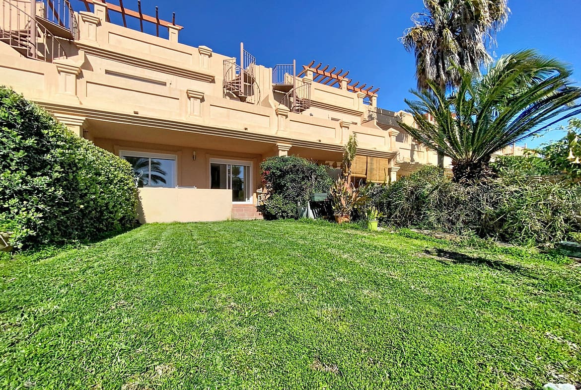 This beautiful property is located In Buenas Noches, Estepona West, just 10 minutes by car from Estepona City and less than 300 meters walking distance to the beach. South oriented with large windows, natural light floods into all corners of this property. The open plan kitchen has been fully furnished with new high-end appliances, and emerges with the large and bright living space that opens to the private terrace. It has 3 bedrooms, 2 full bathrooms and 1 guest toilet. The spacious 50m2 solarium offers panoramic sea views, and the ample private garden with sea views is perfect for drinking your daily cup of coffee or enjoying time in the privacy of your own home.