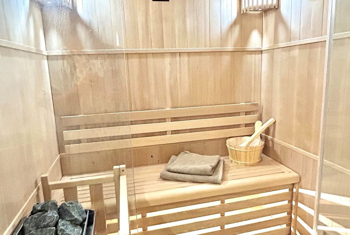 – Two spacious bedrooms with refined décor and one modern shared bathroom with high-quality fixtures and sauna