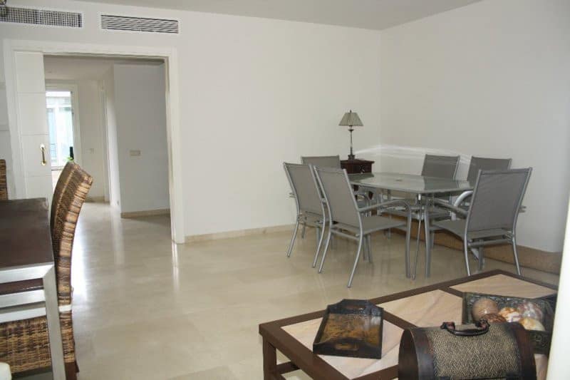 This south-facing apartment boasts unparalleled sea views and lush landscaped gardens. It features a spacious entrance hall, an elegant living and dining room with access to a magnificent terrace—perfect for relaxing and taking in the scenery. The fully equipped kitchen includes a breakfast area and a separate laundry room. There are three double bedrooms with fitted wardrobes and two bathrooms. Additionally, the property offers underground parking and a storage room, accessible by elevator or stairs. Ideally situated just a short stroll from restaurants and only a five-minute drive to a wide range of services, including bars, shops, supermarkets, upscale beach clubs, and prestigious golf courses. property Details: 3 Bedrooms, 2 Bathrooms Built Area: 170 m² Terrace: 50 m² 24-Hour Security