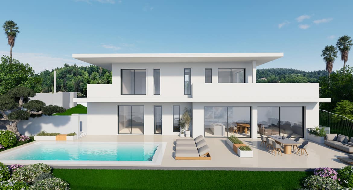 An energy-efficient, sustainably detached luxury villa with a unique contemporary design featuring the highest quality fixtures and fittings to ensure functionality and optimal comfort. The energy-efficient floor-to-ceiling windows allow you to enjoy the beautiful sea views and the abundant sunlight in all bedrooms and the spacious open-plan living room.