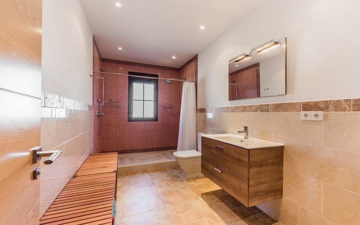 With 265 m² of constructed space, the villa includes three spacious bedrooms and two well-appointed bathrooms. The master bathroom features a modern shower and ample storage rooms. Double glazed windows and electric blinds ensure comfort and energy efficiency throughout the year. Additionally, there is plenty of space for customization, whether you envision a larger sitting room or additional bedrooms.