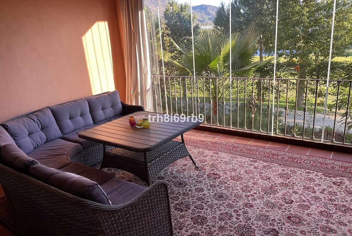 Upon entering, you are greeted by a stunning galleried staircase that immediately enhances the sense of space. The ground floor features a modern kitchen, guest WC, a generous lounge/dining area, and a large terrace enclosed with glass curtains—perfect for all-year-round enjoyment. Upstairs, the property comprises three double bedrooms. Two bedrooms are served by a shared shower room with twin sinks and a WC located on the landing. The master suite boasts an open-plan en-suite bathroom with twin sinks, a WC, and a spa bath with shower attachment. Both the master bedroom and one guest bedroom offer direct access to a terrace with breathtaking panoramic views of Azata Golf, the Sierra Bermeja mountains, and the Mediterranean Sea.