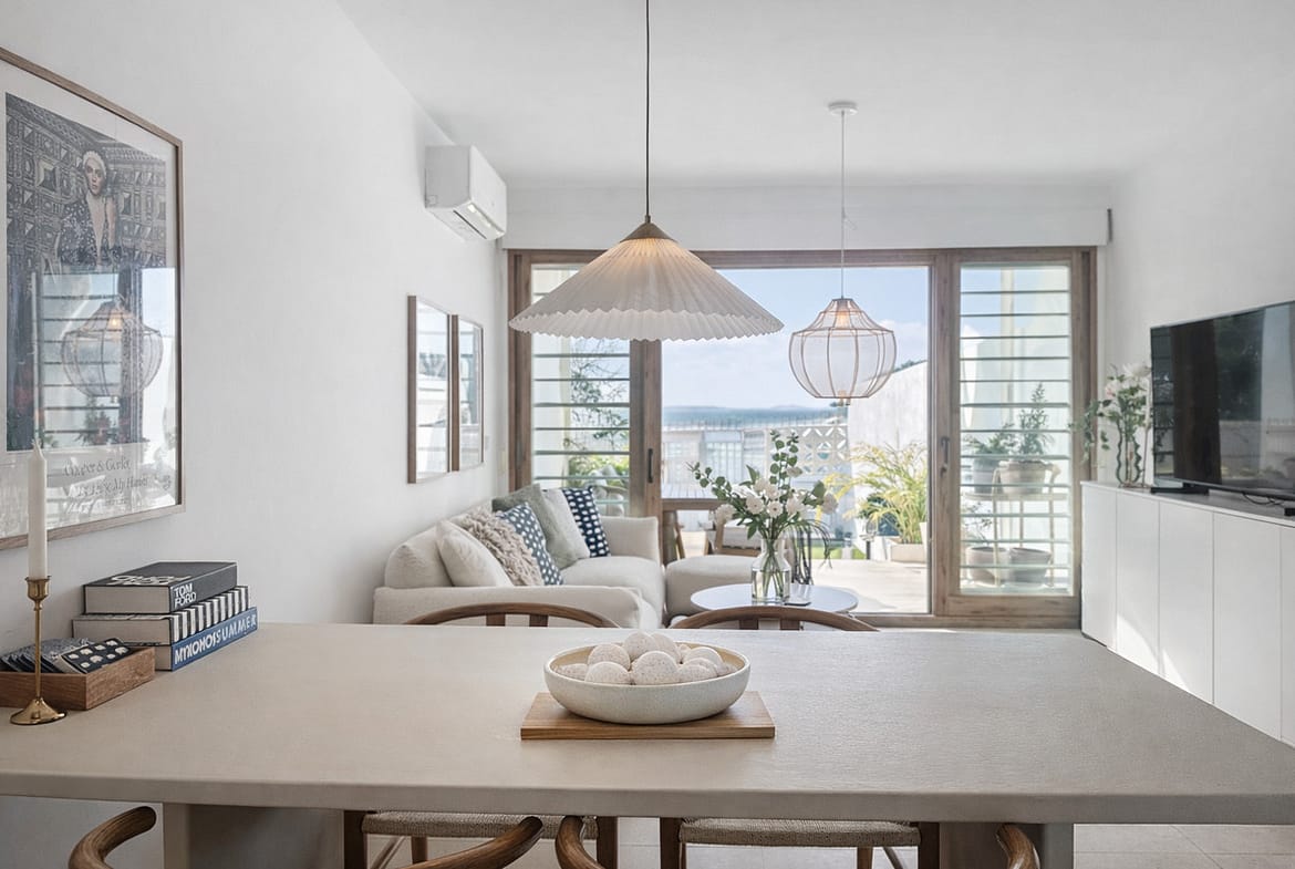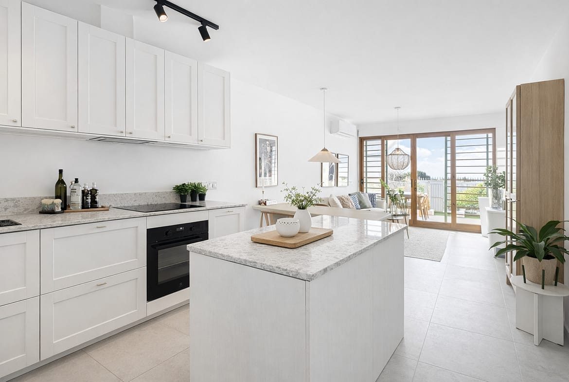 The property features 3 bedrooms and 2 bathrooms, offering a modern and functional layout. The open-plan kitchen is perfectly integrated with the dining and living area, creating a bright, open and very welcoming space.