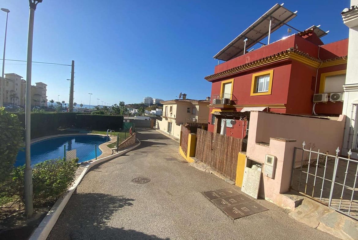 Nice townhouse for sale with 195m2 built with 3 large bedrooms in front of the Sohail Castle, it is distributed on the ground floor of 65m2 with access to the garden, large porch and parking area, large living room with fireplace, toilet, independent equipped kitchen that gives access to a spacious terrace with garden area. On the upper floor of 62m2 we have 3 large bedrooms, all of them with fitted wardrobes, 2 full bathrooms with a bathtub, one of them en suite, we access the top floor where we find a large 65m2 solarium where you can enjoy some good views of the sea to the mountains and the good climate of the Fuengirola area. The closed urbanization with few neighbors has a swimming pool. It is located in an area with very good access and close to all amenities. Do not hesitate to visit this property.