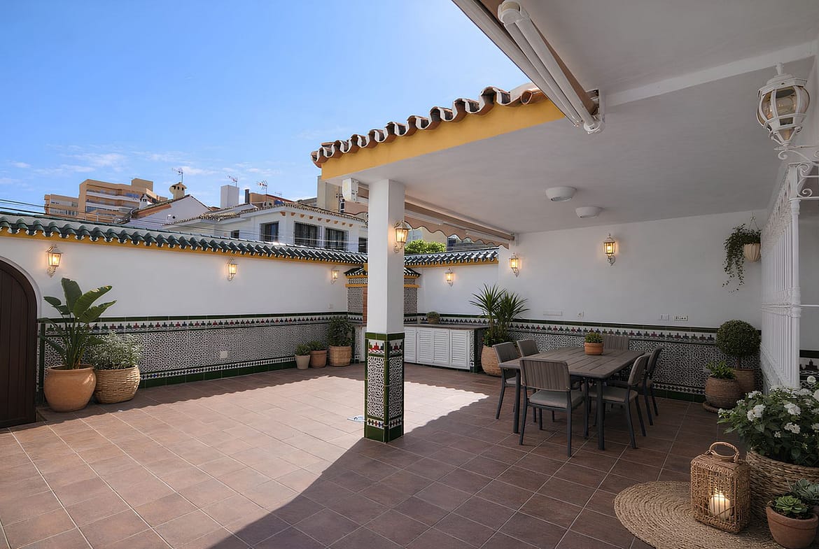 The house features a spacious front patio with sun all day and a BBQ area, perfect for enjoying the Costa del Sol lifestyle. It is a very bright home situated in a peaceful residential area.