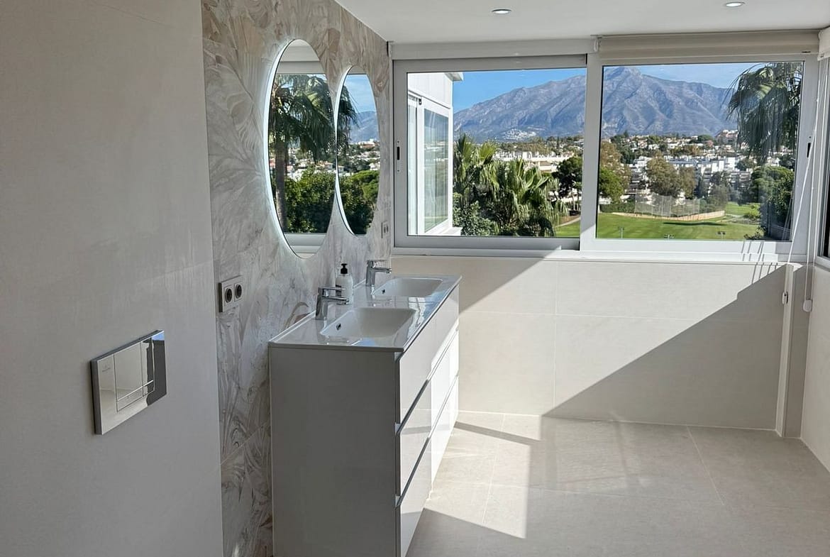 Casa Bellavista is a beautifully renovated villa in the heart of Guadalmina Alta, directly on the frontline of the golf course and just steps from the Guadalmina Golf Clubhouse. With panoramic views of the greens and La Concha, this home offers one of the most privileged locations in the entire area. The warm, elegant design and brand-new furnishings create an inviting atmosphere from the moment you enter.