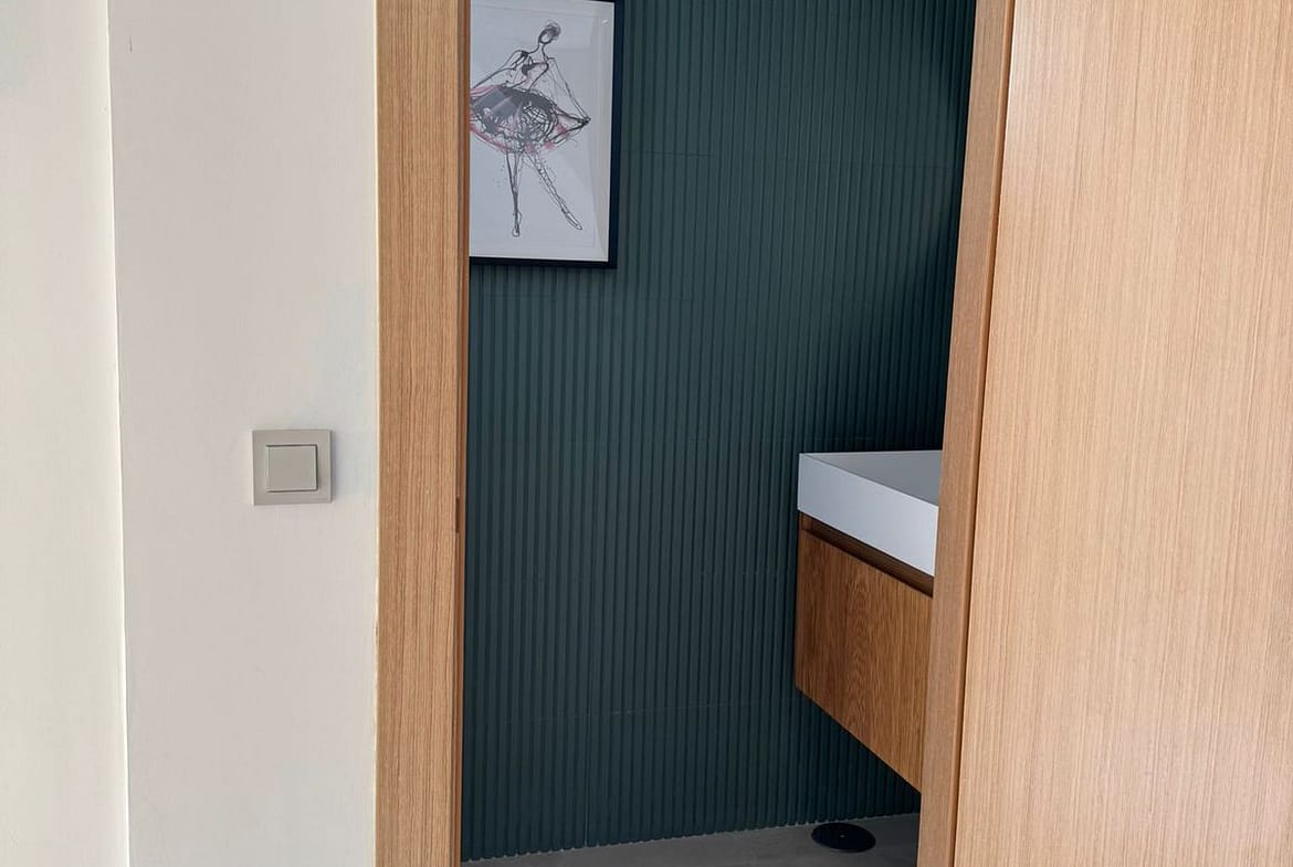 The villa is spread over three levels. The main floor features a bright kitchen and a spacious living-dining area with stunning 180-degree views and direct access to the garden. Downstairs you’ll find two comfortable bedrooms with ensuite bathrooms, a large additional living room, and a laundry room. The top floor is dedicated to a generous master suite with spectacular views, a large private bathroom, and ample built-in closets. Outside, the garden includes a private pool, lush greenery, and complete privacy. The garage has space for a golf buggy, making it perfect for passionate golfers.