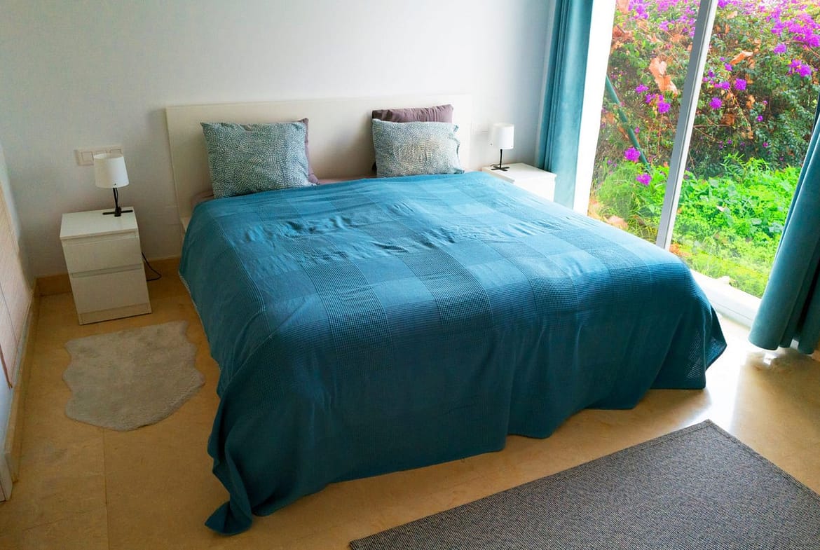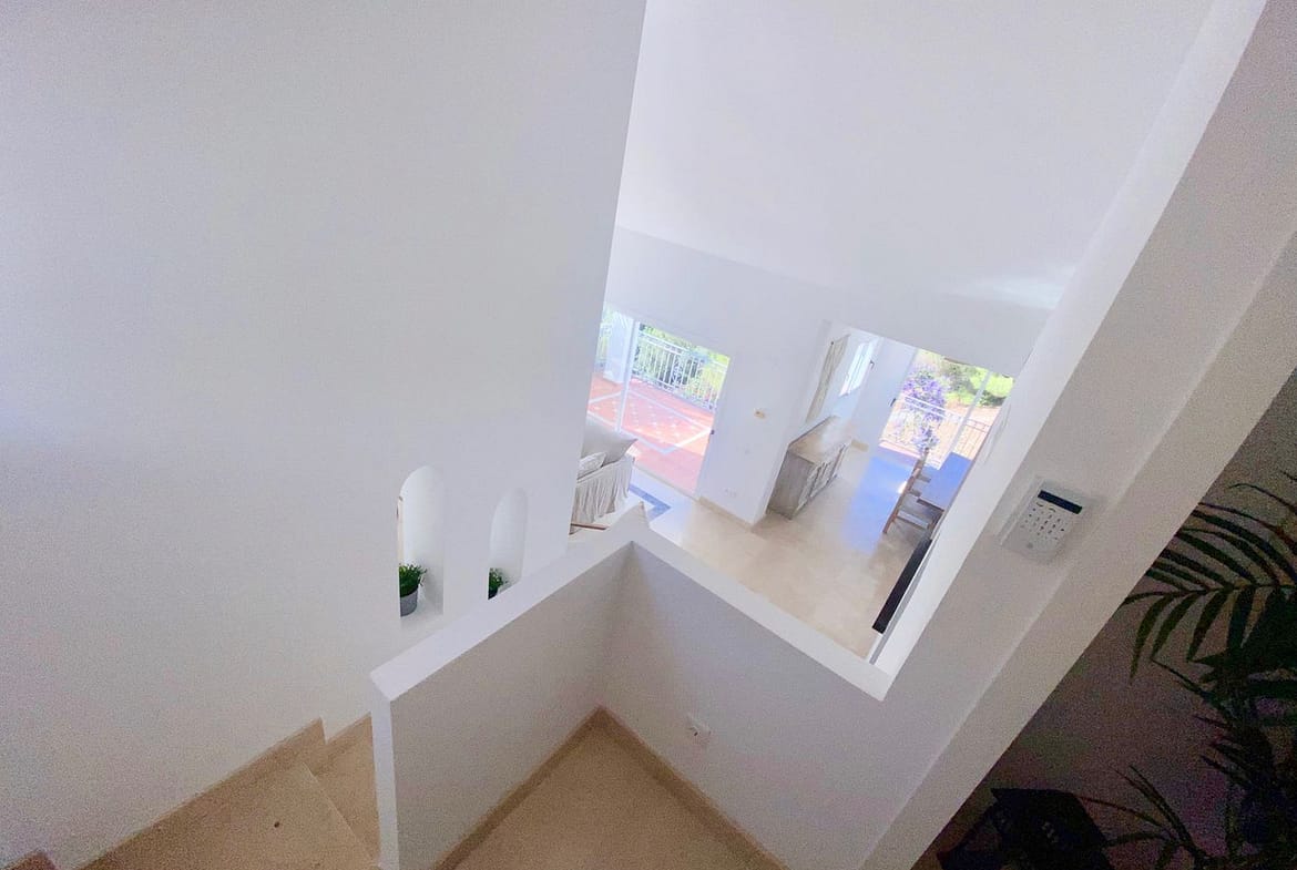 Down the second staircase you reach the 3 bedrooms and 2 bathrooms, 1 bedroom is en suite. By opening the sliding doors you are coming into the garden.