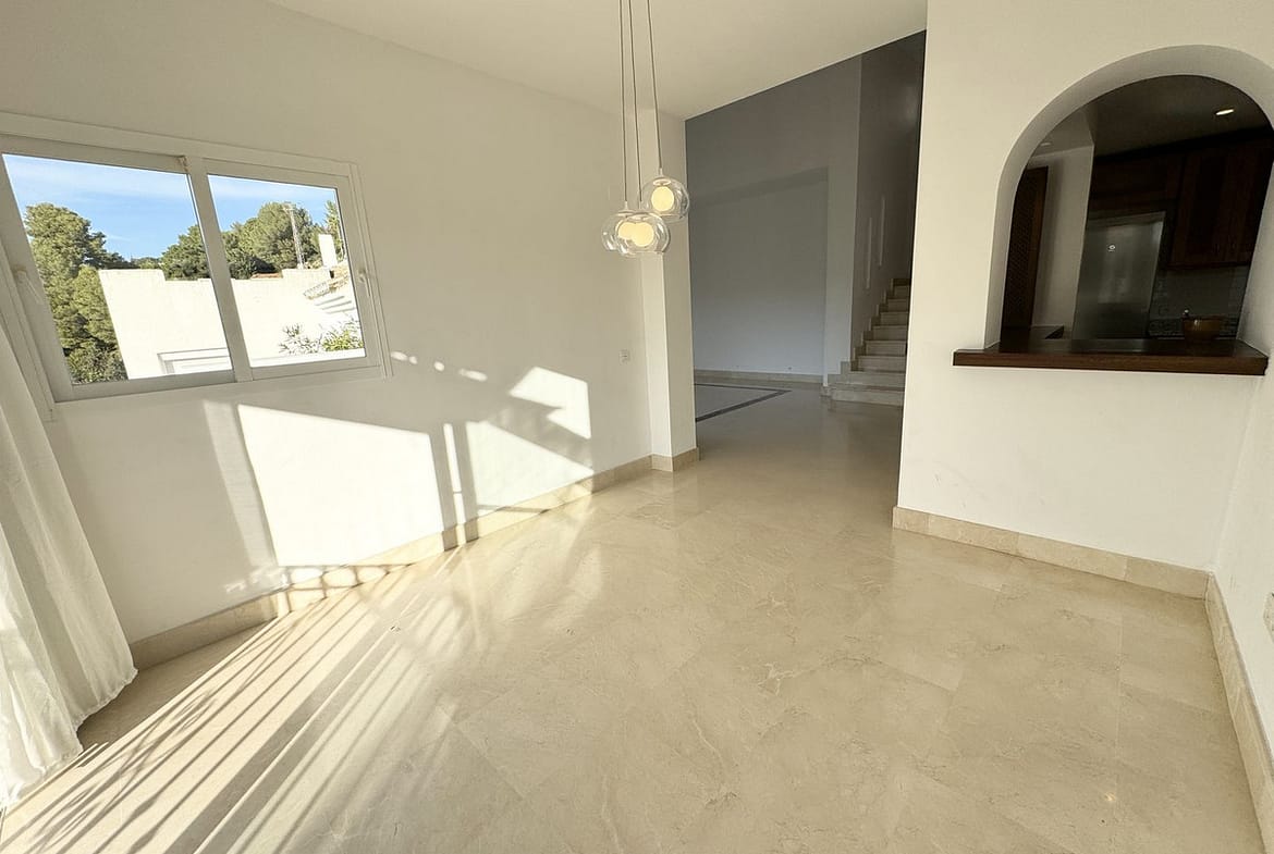 This stunning, sun-filled townhouse is nestled within the peaceful and secure urbanization of Zahara de Istan, 7km drive up the road to the beautiful Spanish pueblo of Istan. The complex is surrounded by lush nature and is very safe & family friendly with stunning communal swimming pool & children's play area with swings, slide, trampoline. Less than 10 minutes drive from Marbella's Golden Mile & Puerto Banus, with Mercadona supermarket and the Manolo Santana Tennis Club only 7 minutes away by car. Three international schools are within a 10-15 minute drive, providing easy access to top-tier education.