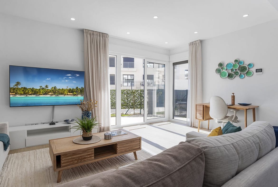 New to market and available for vacation and short-term rental, this spacious corner townhouse is fully equipped for your complete convenience and comfort. The stylish interior design creates a modern coastal vibe, private terraces & garden with sea views and private parking outside for 2 cars. Onsite facilities include resort style pool area, gym, sauna, community lounge and coworking areas.