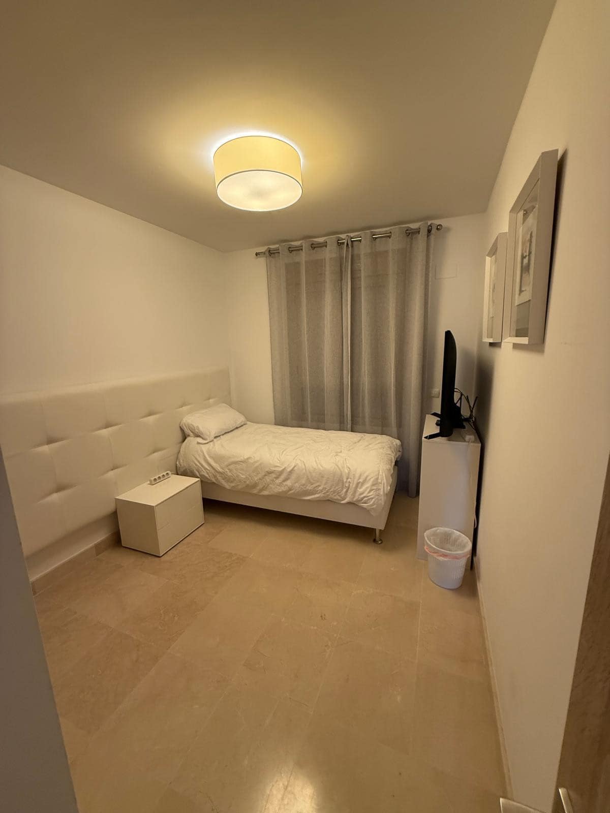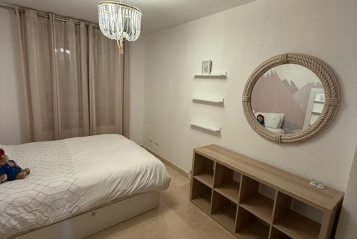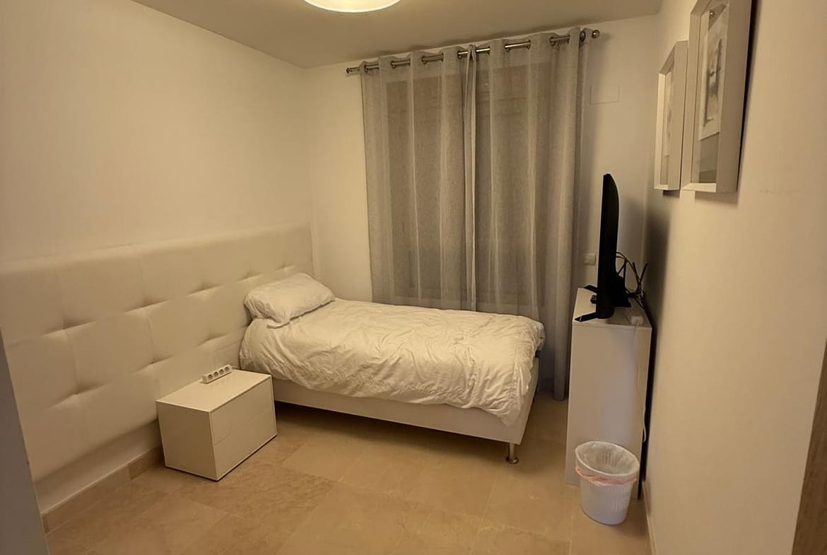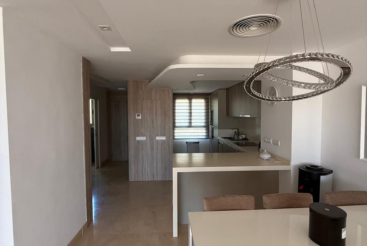 Distributed over two levels, the property features a bright and spacious open-plan living and dining area designed to maximize natural light and seamless indoor-outdoor living. Large sliding doors open onto a generous terrace with lovely golf views and partial sea views—perfect for relaxing or entertaining.