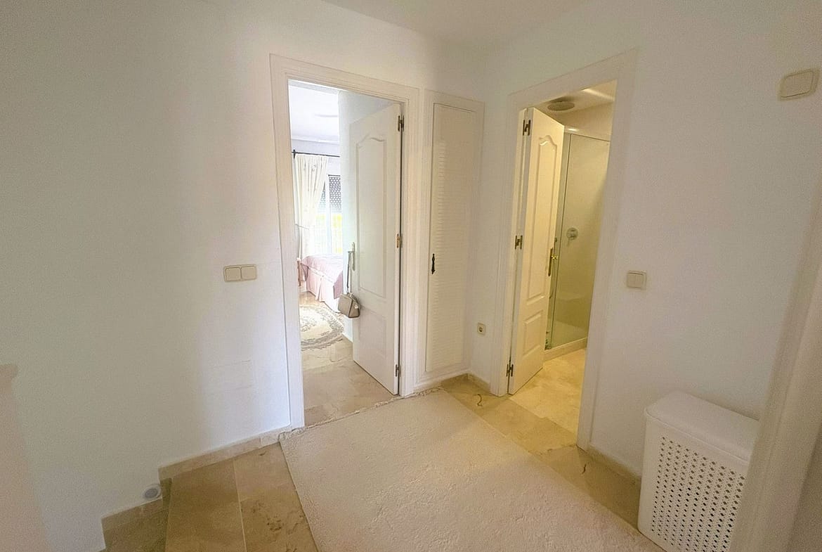 Located in a well-established, gated community featuring low-rise townhouses arranged around a spacious communal swimming pool. From here, a pleasant stroll takes you to the picturesque marina of La Duquesa, the charming seaside village of Castillo, and the unspoiled sandy beaches of the Mediterranean coastline. La Duquesa is a vibrant harbour offering a variety of shops, boutiques, bars, and restaurants. It’s a hub for both sea and land-based activities and is surrounded by numerous championship golf courses. In the evenings, the area comes alive with a lively yet relaxed atmosphere, appealing to all ages. In contrast, Castillo exudes a traditional village charm and is particularly known for its excellent fish restaurants. A further ten-minute walk along the seafront promenade brings you to Sabinillas, a bustling fishing village with an array of supermarkets, banks, shops, tapas bars, and restaurants. The area benefits from excellent road connections to Estepona and Marbella, with Malaga International Airport less than an hour away and Gibraltar Airport just 25 minutes by car.