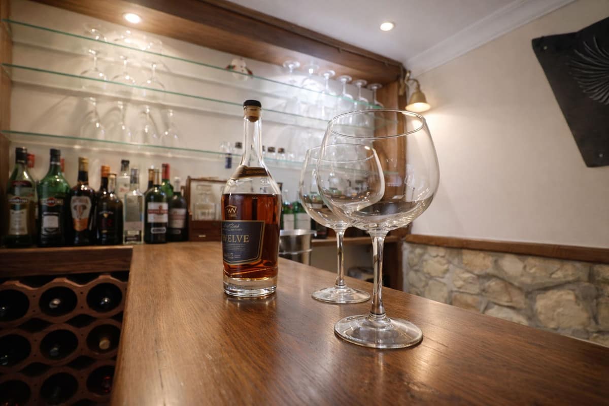 The next level has a lounge and open plan kitchen with underfloor heating and a chimney, too.