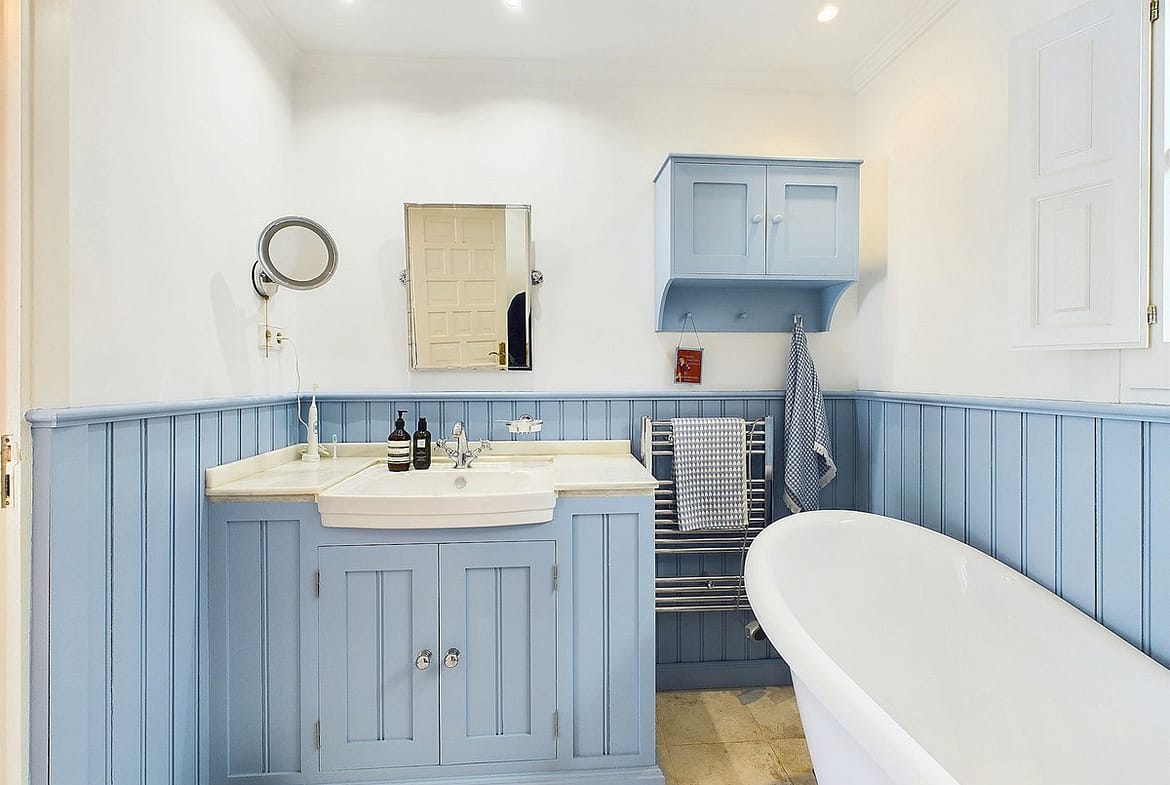 The master bedroom is located on the upper level and features an en suite bathroom with a stunning 'roll-top bath'. This bedroom has its own private terrace with a jacuzzi, perfect for relaxing while enjoying the beautiful views. On the lower level, there are two guest bedrooms. Bedroom 3 has a bathroom with a steam shower, and the second bedroom also has an en suite bathroom with a large walk-in shower.