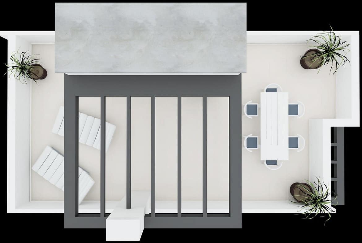Spread across multiple levels, the property features two spacious terraces plus a large rooftop solarium complete with a private pool—perfect for relaxing, sunbathing, and entertaining against panoramic views. Inside, the open-plan living area flows seamlessly to a sleek fitted kitchen, ideal for both laid-back dining and hosting guests.