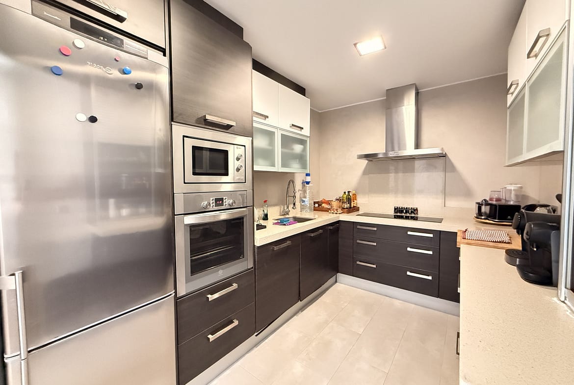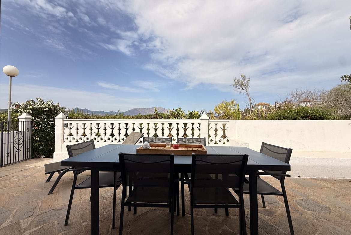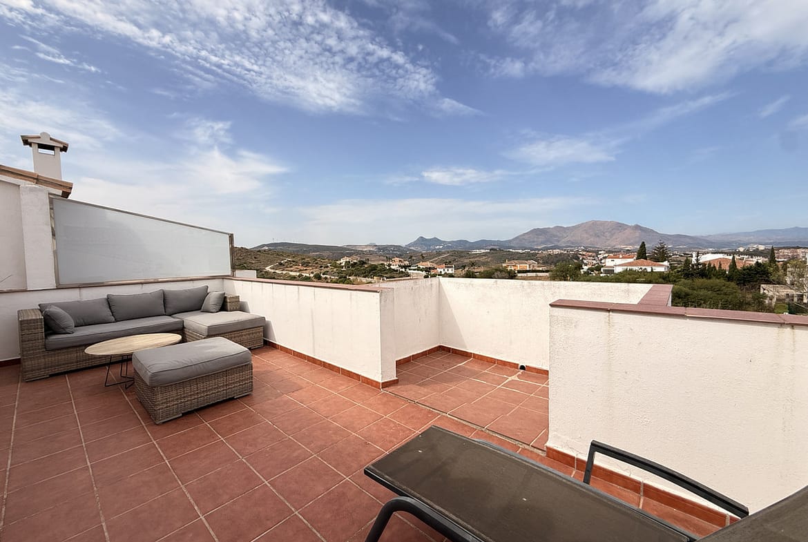 Outside, the home boasts several terraces, both covered and uncovered, with stunning panoramic views of the sea and the mountains. The gated community offers a communal swimming pool, shared gardens and free parking within the complex, ensuring both security and convenience.