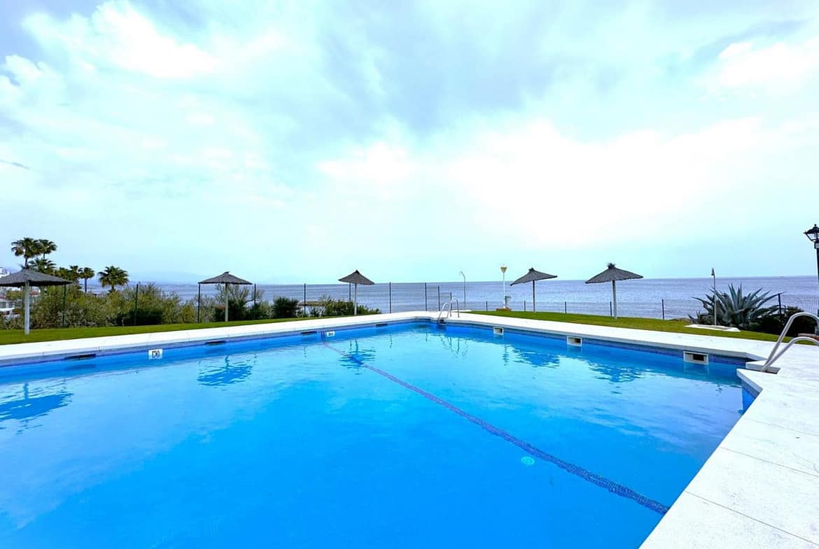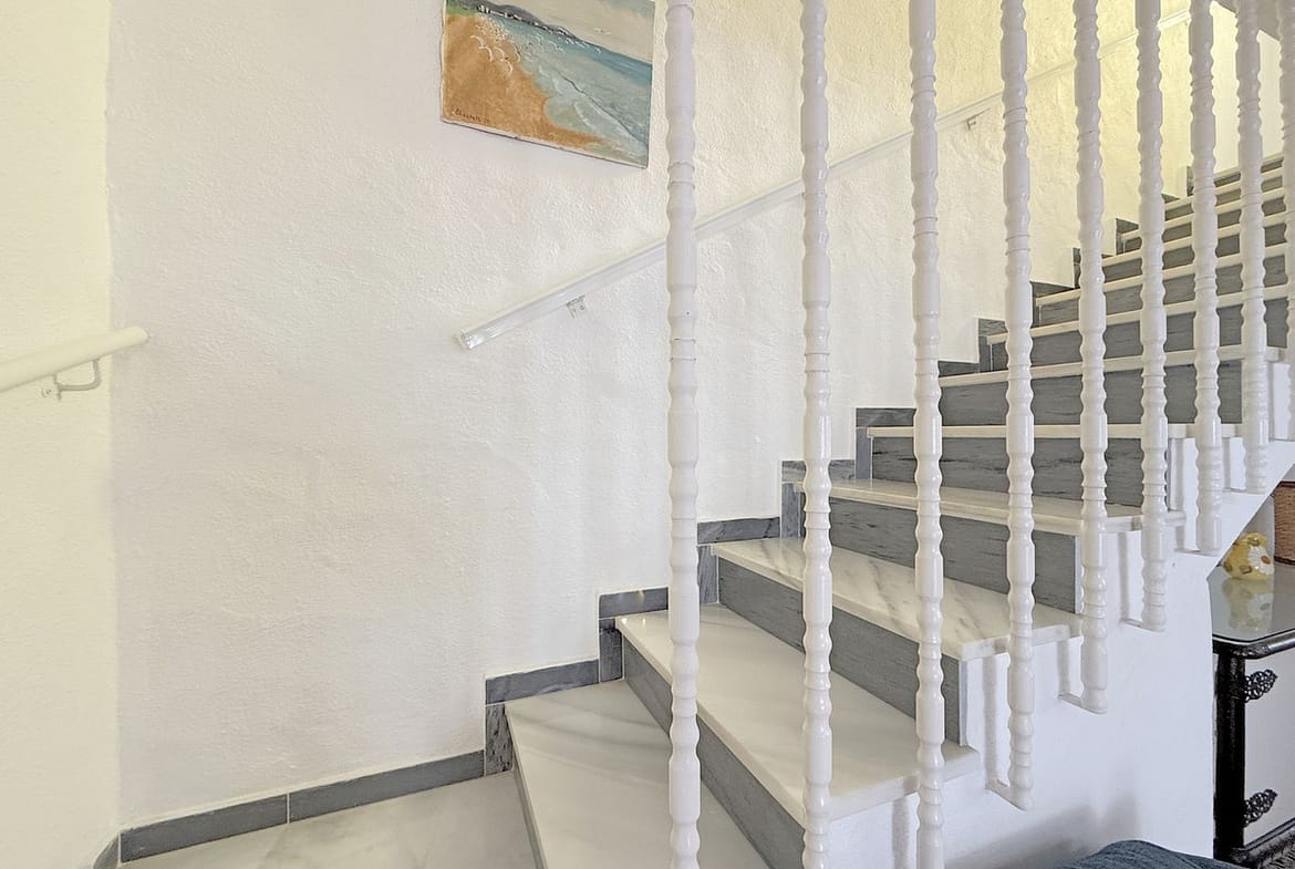 Located in an exclusive and peaceful beachfront development, this charming corner townhouse offers a privileged setting right by the sea. The community is pleasant and well-maintained, featuring beautiful landscaped gardens and a large communal swimming pool facing the sea, perfect for enjoying the Costa del Sol’s wonderful climate.