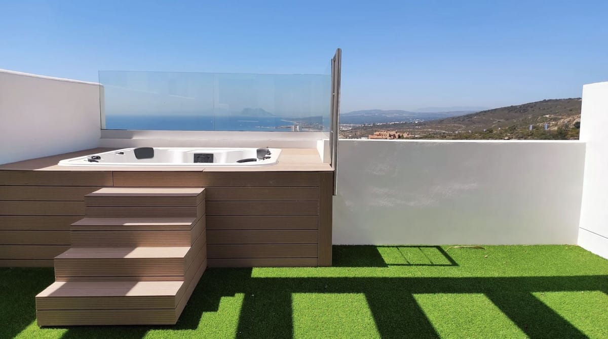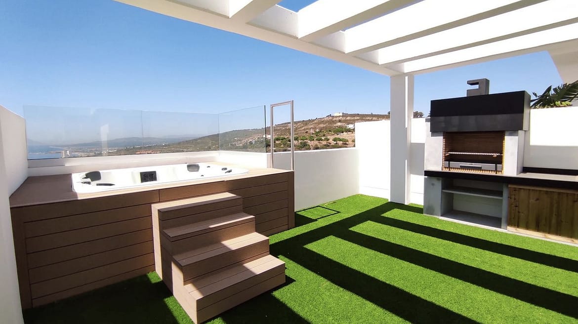 Golden View Manilva – Un Furnished 3 Bedroom Townhouse With Spectacular Sea View & Rooftop Solarium, Jacuzzi