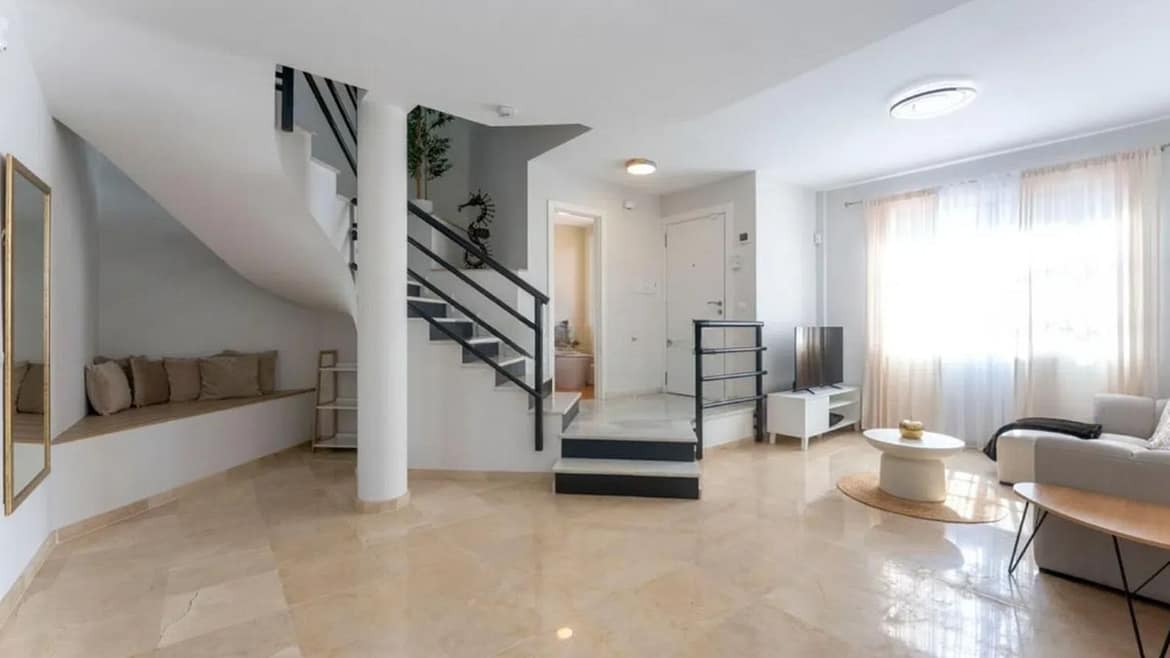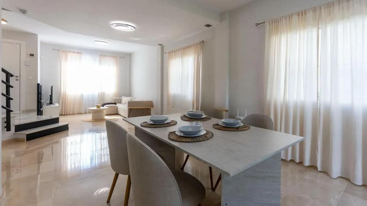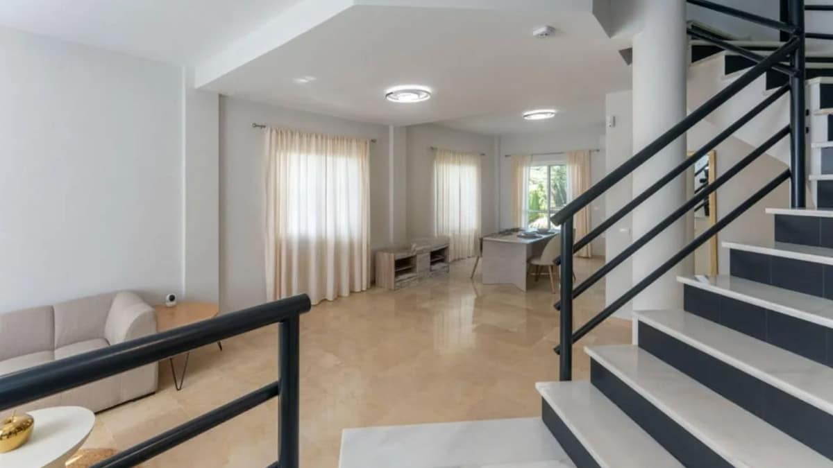 The house is distributed over three levels and offers 148 m² built (111 m² usable), combining comfortable interior living with excellent outdoor areas. The main floor features a welcoming living room with direct access to the garden and communal swimming pool, creating the perfect setting to enjoy the Mediterranean climate all year round, as well as a kitchen and a bathroom. The first floor comprises three bedrooms and two bathrooms, providing practical and comfortable accommodation for family living. The top floor boasts an impressive 45 m² private solarium with open and sea views, ideal for creating a chill-out area, outdoor dining space, or relaxation zone.