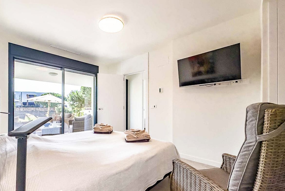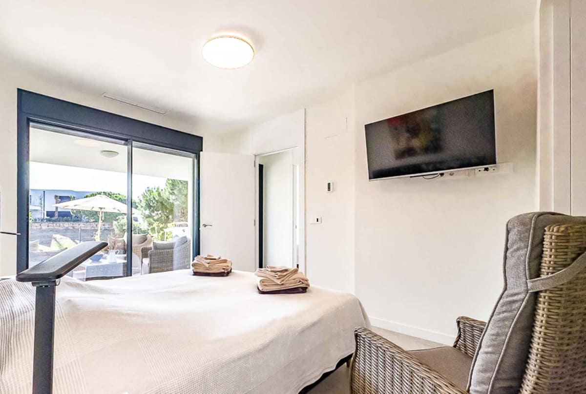 Spread over three levels and 181 m², the house offers bright spaces, floor-to-ceiling windows, and stunning views of the Mediterranean, golf course, and mountains. It features three spacious bedrooms with en suite bathrooms, a fully equipped kitchen, open-plan living and dining areas, private pool, and several terraces totaling 160 m² — including a rooftop solarium for unforgettable sunsets.