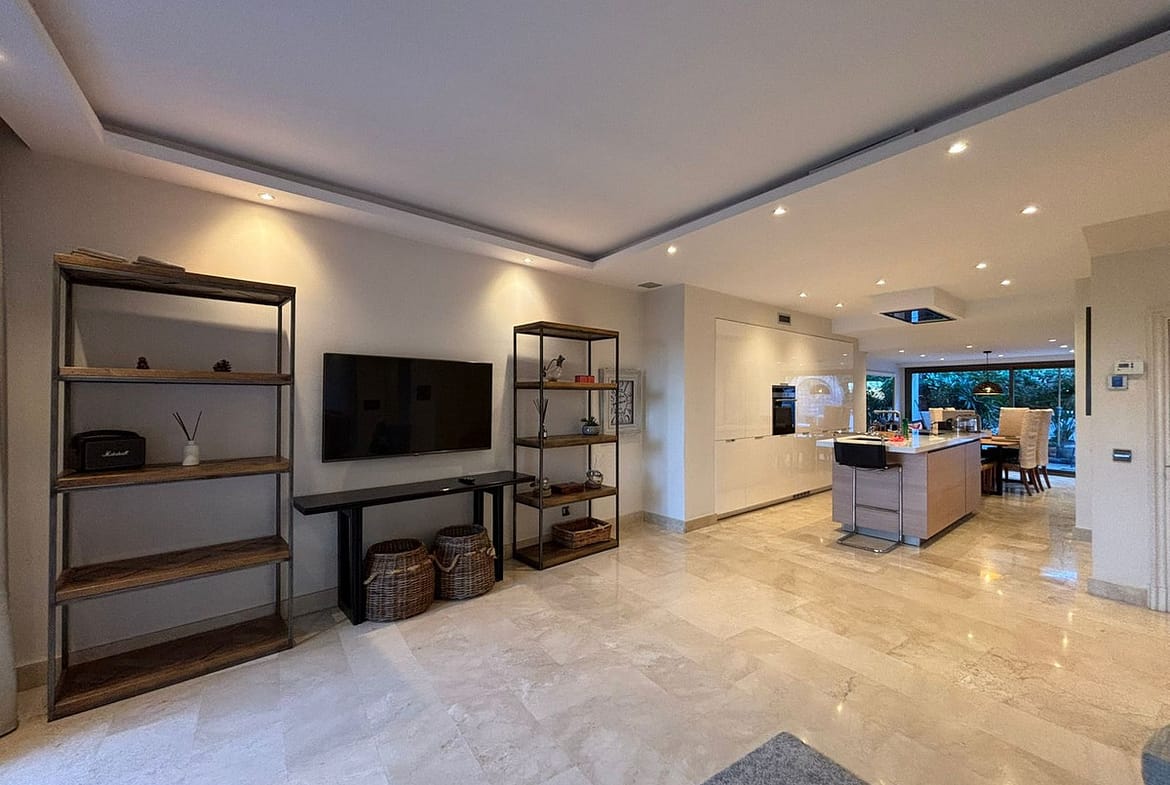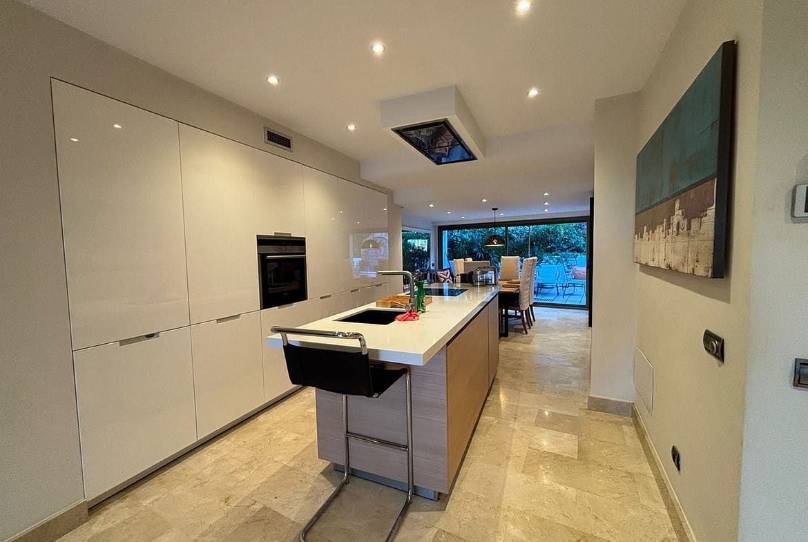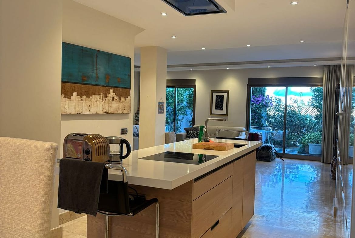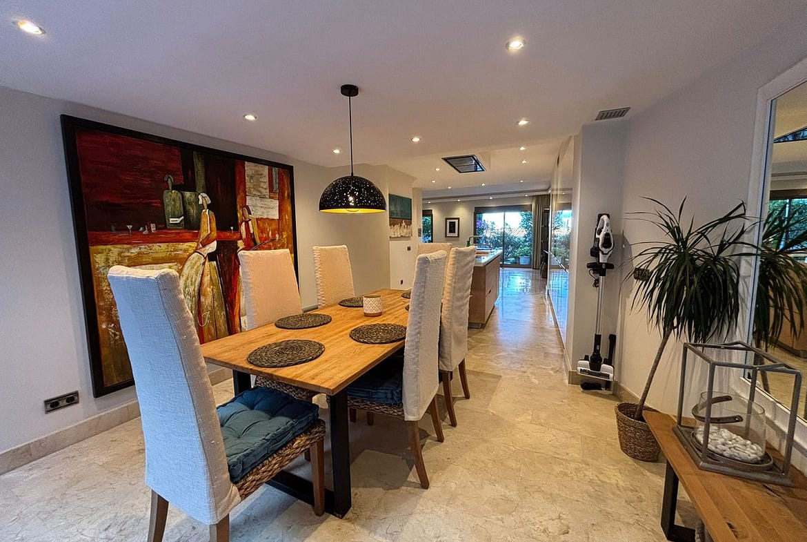 The bright and spacious living-dining area opens directly onto the private terraces, creating an ideal setting to enjoy Marbella’s year-round climate. The home boasts two generous terraces and a balcony, offering versatile outdoor areas for both entertaining and everyday living.