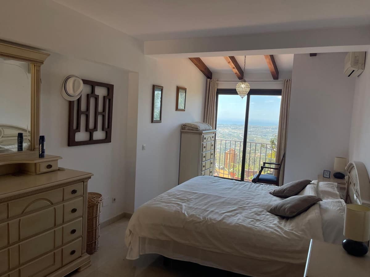 This bungalow-style villa retains its authentic Andalusian charm, with high vaulted ceilings, exposed wooden beams, and traditional Spanish tiling throughout. Thoughtfully maintained and updated, the property boasts renovated en-suite bathrooms, a welcoming lounge and dining area with feature fireplace, and a delightful conservatory with fully retractable doors opening onto a generous terrace with breathtaking panoramic views stretching from the coastline to Fuengirola, La Cala, and up to the majestic Mijas Mountains.