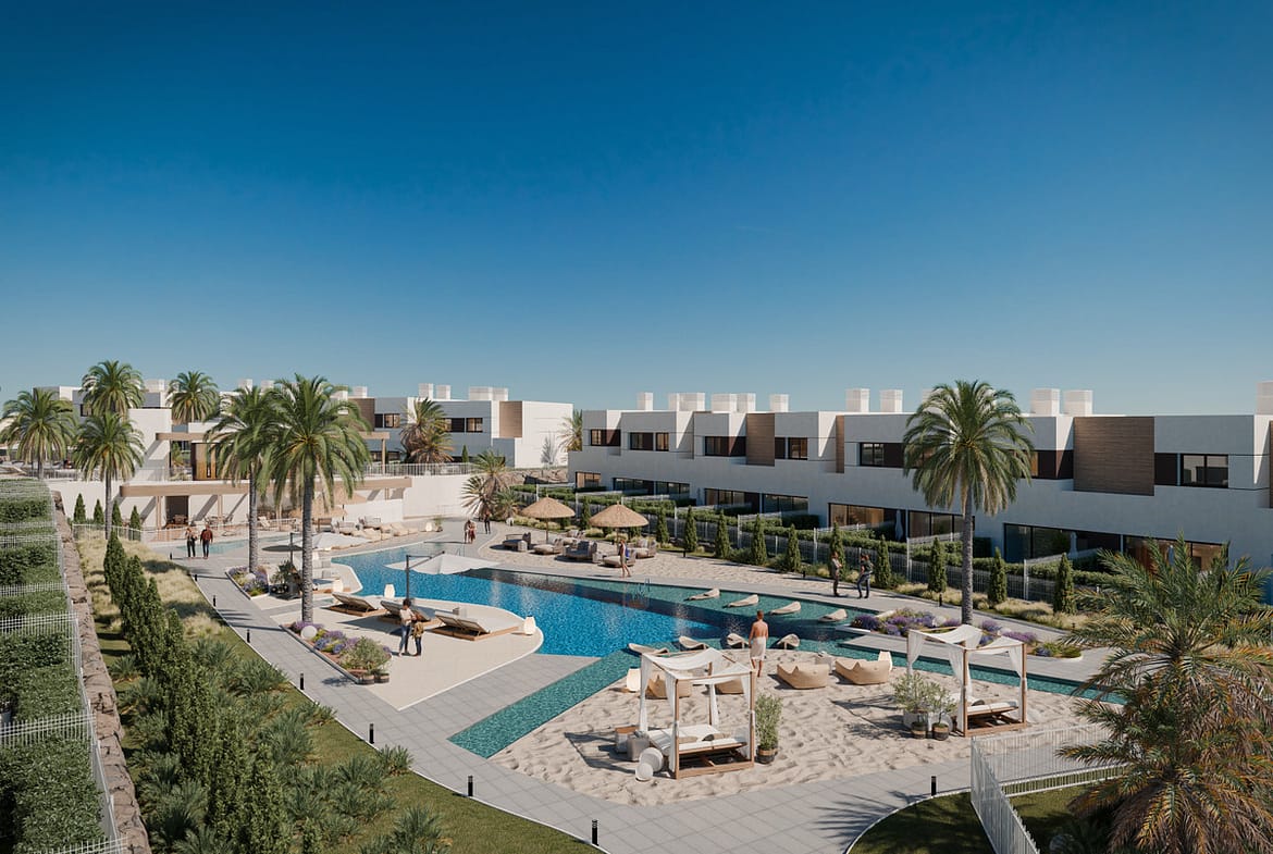 The philosophy of the project seeks to achieve a balance between architecture and nature. Designed to enhance the beauty of the surroundings, it creates a “resort” space featuring pools with a chill-out area, a co-working space for working from the comfort of your home, a fully equipped gym, and a social club where you can share unforgettable moments with your loved ones and neighbours.