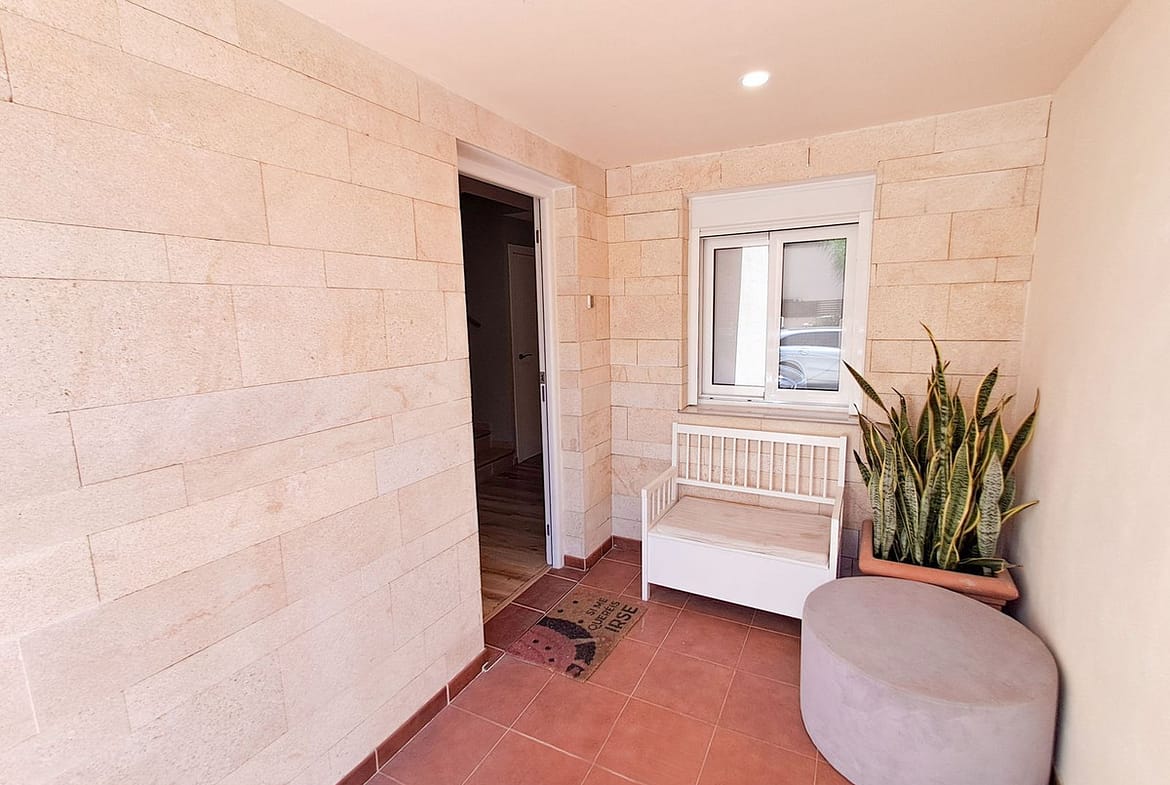 First floor: On this level, to the left, there is a spacious open-plan living room with access to the property’s patio – an area with a barbecue designed for family enjoyment and perfect for children. On the same floor, the house also offers a fully fitted kitchen with direct access to the patio, 1 bathroom, and a double bedroom with its own private terrace.
