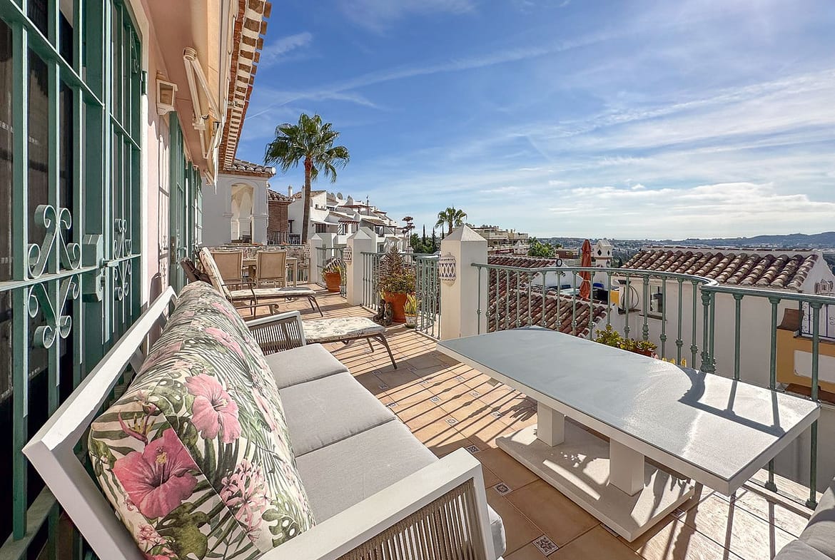 Experience the Andalusian charm of this three bedroom townhouse located in the prestigious Puebla Aida complex in the heart of Mijas Golf.