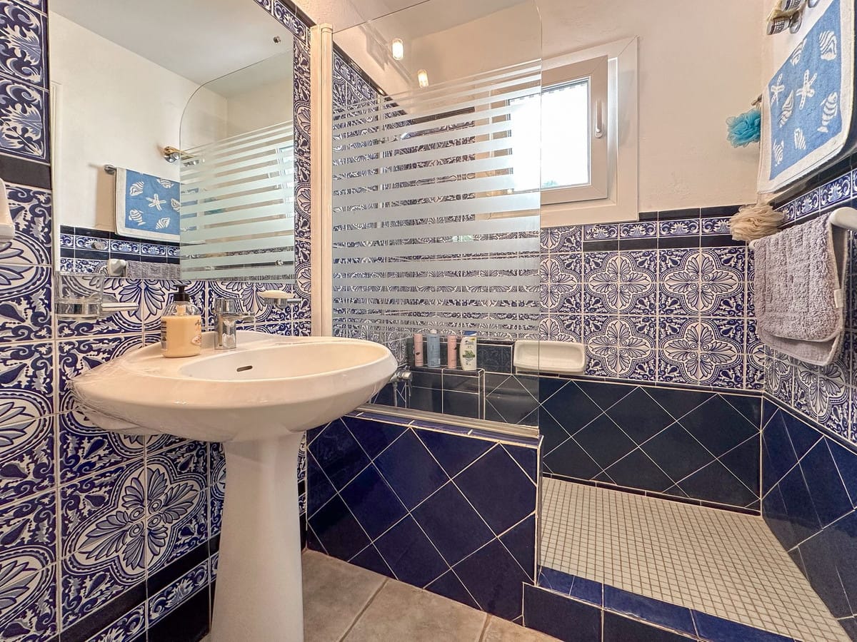 When you enter, you are welcomed by an elegant entrance hall, on the ground floor where there are three bedrooms, with fitted wardrobe and two bathrooms one of the bedrooms, is the master bedroom ensuite and has own access to the terrace and pool.