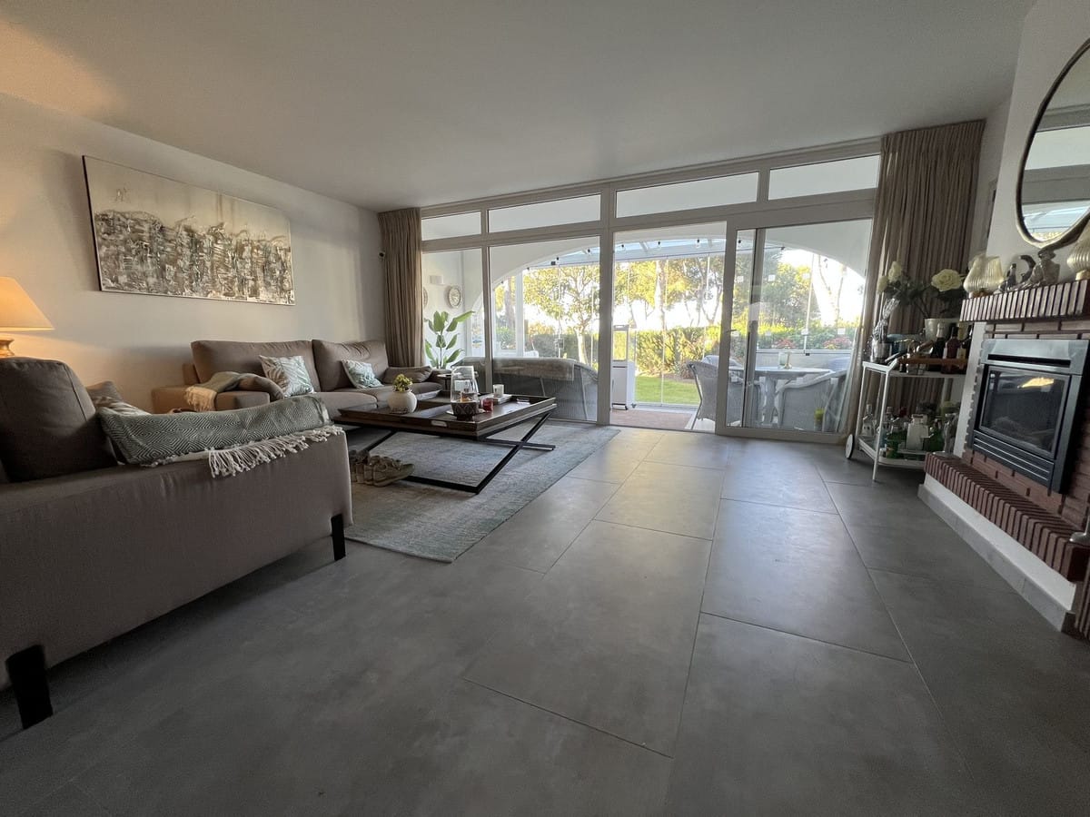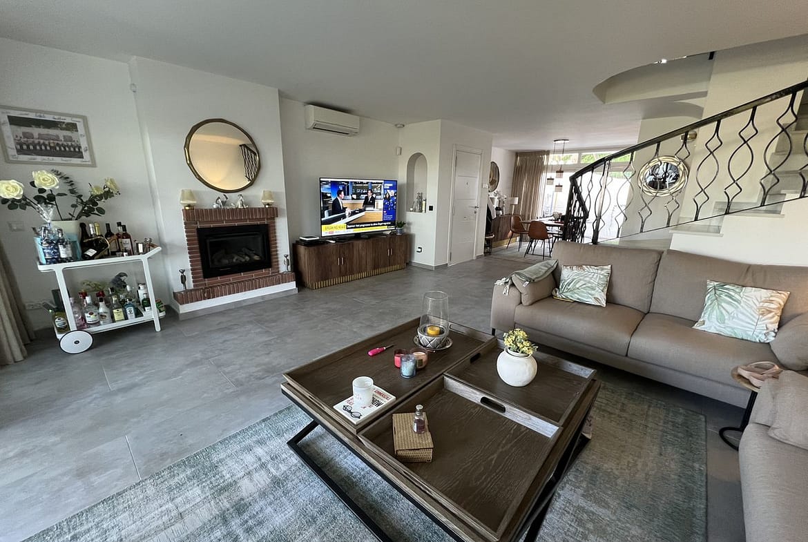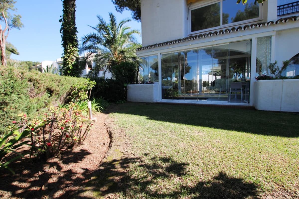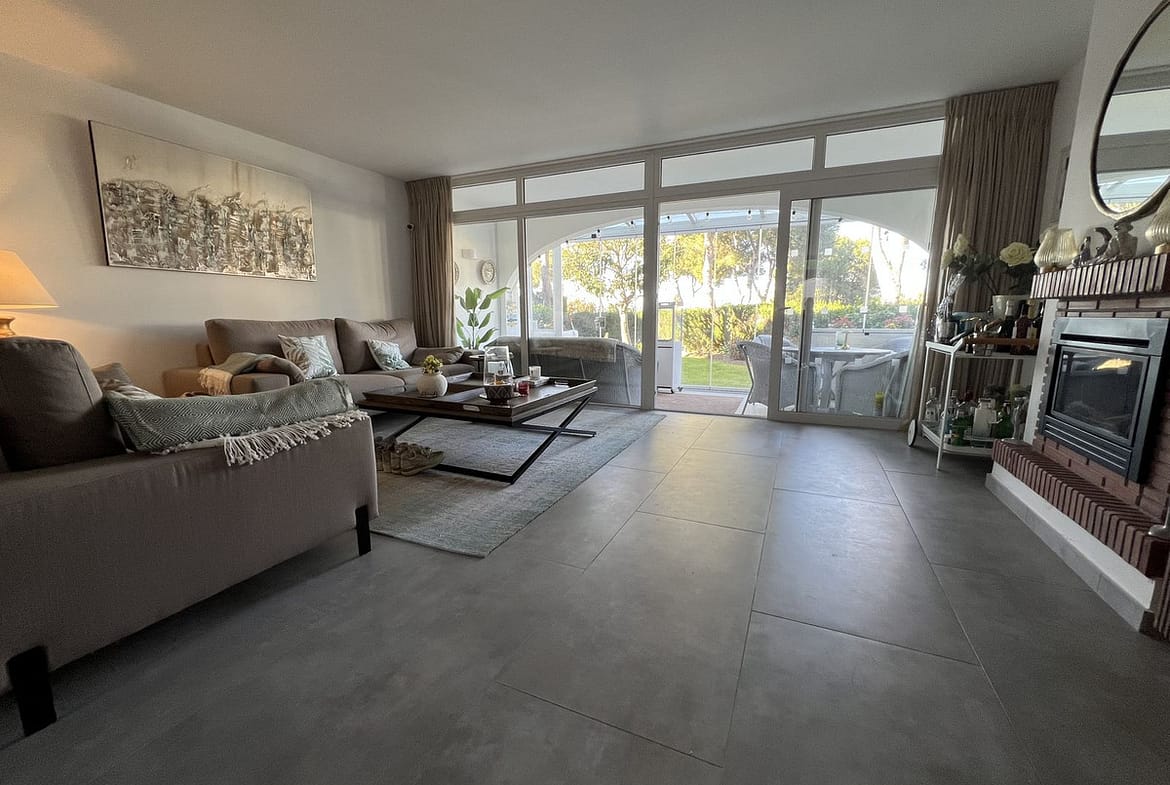 This gorgeous semi detached house in Miraflores will stun you with its tasteful interior updates and yet it still maintains it's Spanish feel. The ground floor welcomes you with a bright, large lounge, dining area and open plan kitchen. There is lots of natural light pouring in from both sides of the house plus you have the use of the private terrace on the east side, ideal for having breakfast in the morning sun. The lounge leads onto the westerly terrace which has been enclosed using glass curtains giving you even more living space and then access onto the garden area which is shared by only one other house. Other features on the ground floor include a brand new kitchen, gas living flame fireplace plus a guest cloakroom. Upstairs is where you will find the huge main bedroom with en-suite bathroom plus walk-in wardrobe. You also have two additional double bedrooms and a shared family bathroom. There is hot and cold air conditioning throughout the house plus owners have the use of the stunning communal swimming pools and you are only a stone's throw from the Miraflores tennis club. Owners have the use of two communal swimming pools and off-street parking. You will not be disappointed