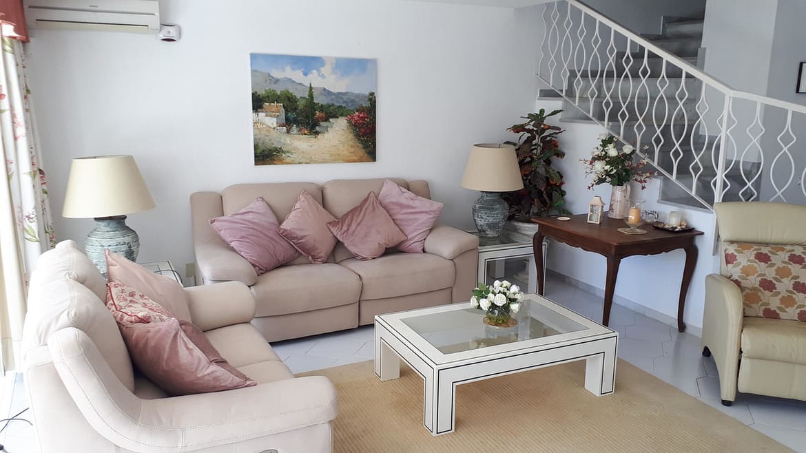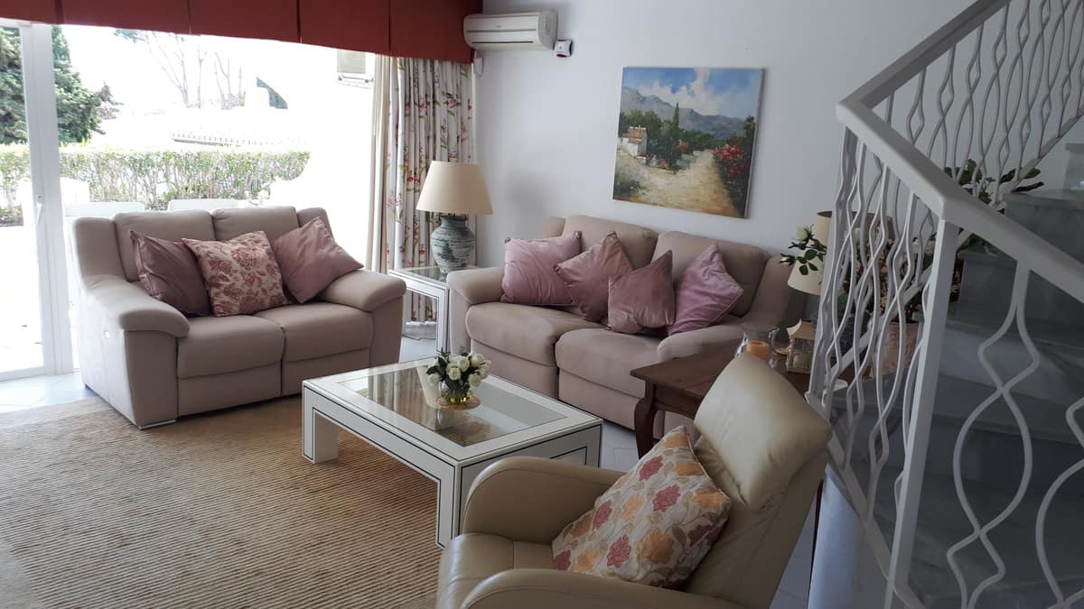 We are delighted to offer this immaculate duplex town house in the very convenient location of Miraflores Resort. The property comprises:- Spacious lounge with open fireplace and dining area leading onto large terrace, fully fitted kitchen, master bedroom with en-suite bathroom and dressing room, two further bedrooms, family shower room and cloakroom. Sunny South-West orientation. Lovely communal swimming pool and sub-tropical gardens. Further features include: private carport, additional patio, 24 hours security. Being sold fully furnished