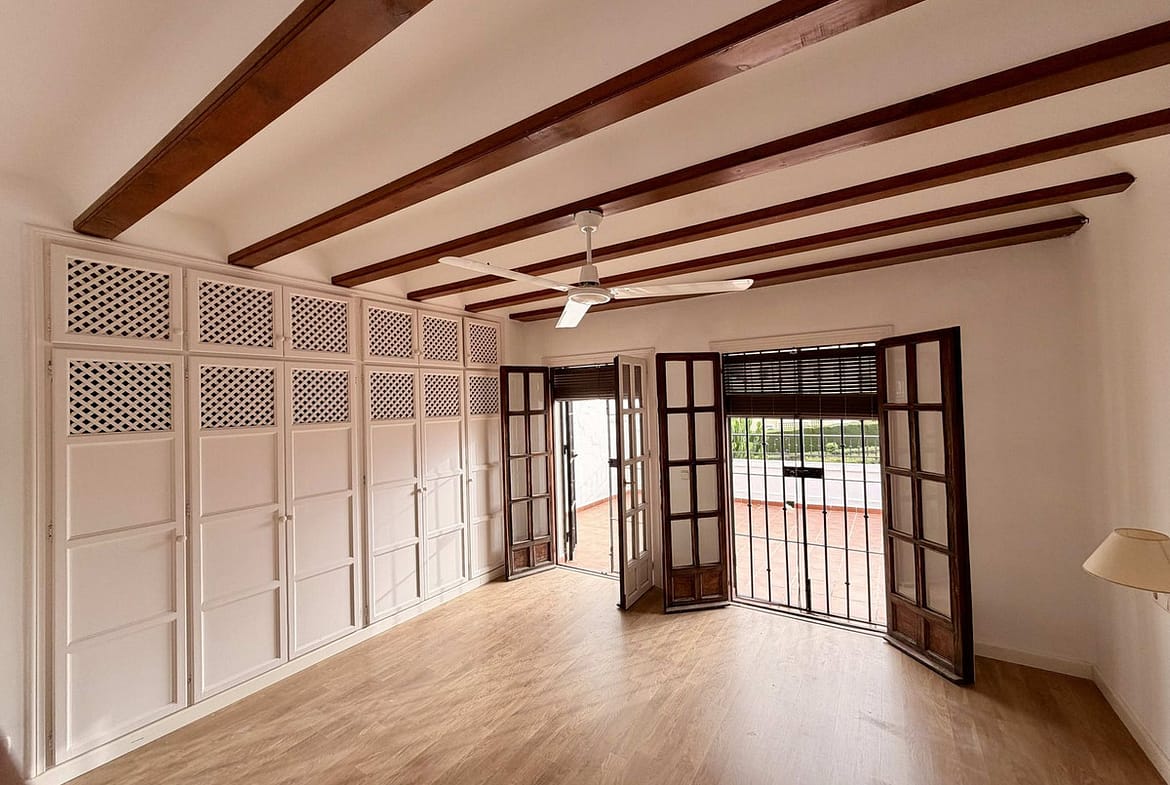 On the first floor there are two good size bedrooms, both come with en-suite bathrooms and fitted wardrobes. One of the bedrooms has an access onto big open terrace with views to gardens and pool, mountains & the sea. The upper floors consist of the guest bedroom suite with vaulted ceilings and private terrace offering panoramic views over Nagueles.