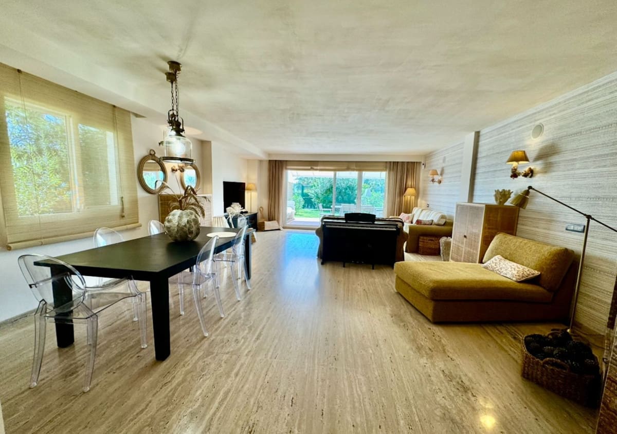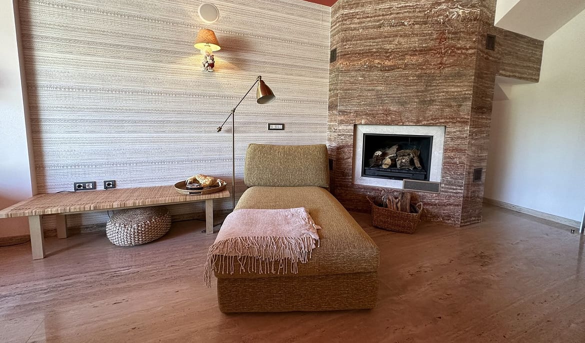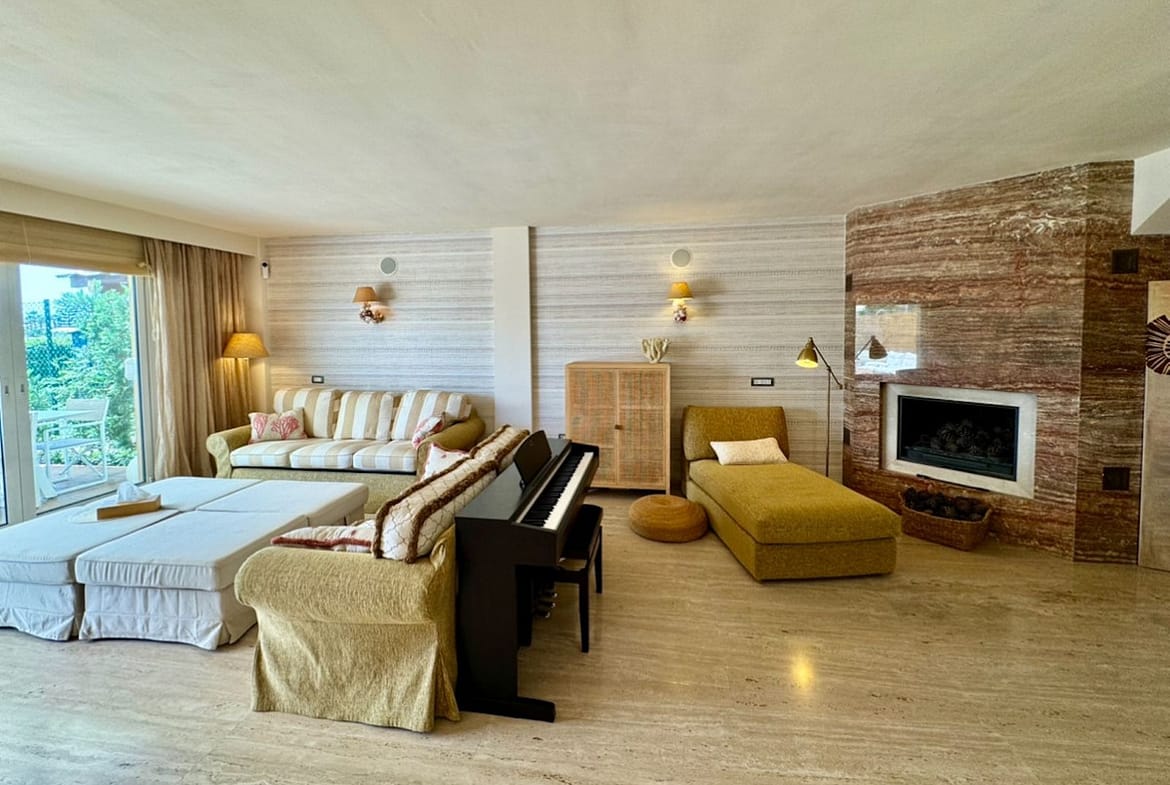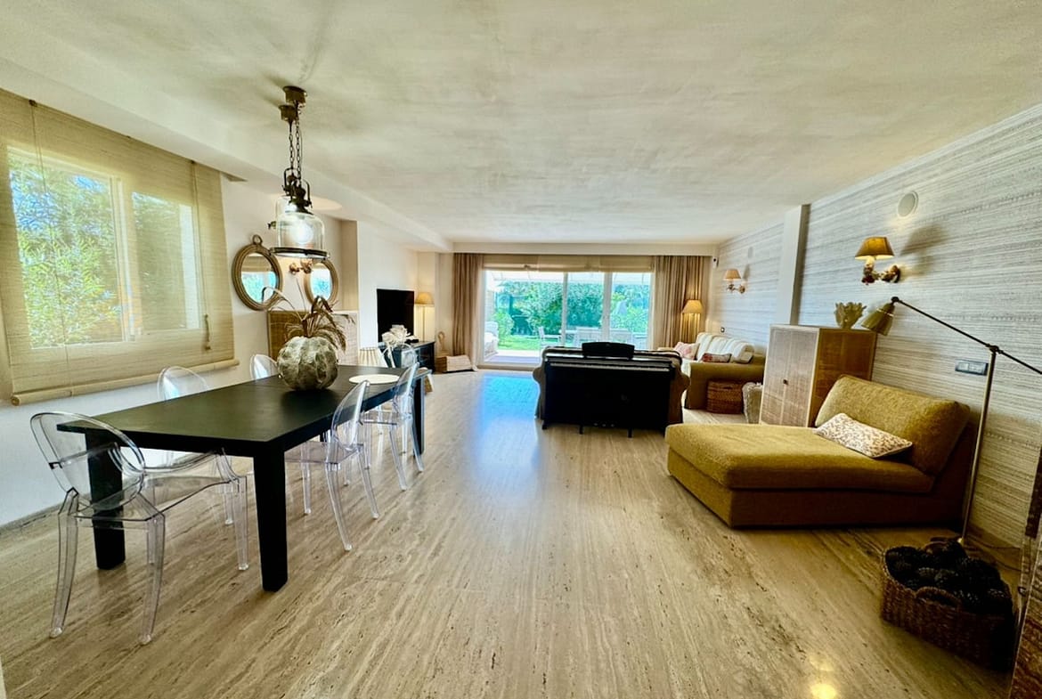 The townhouse has a good size living room with fireplace, and access to terrace with private garden.