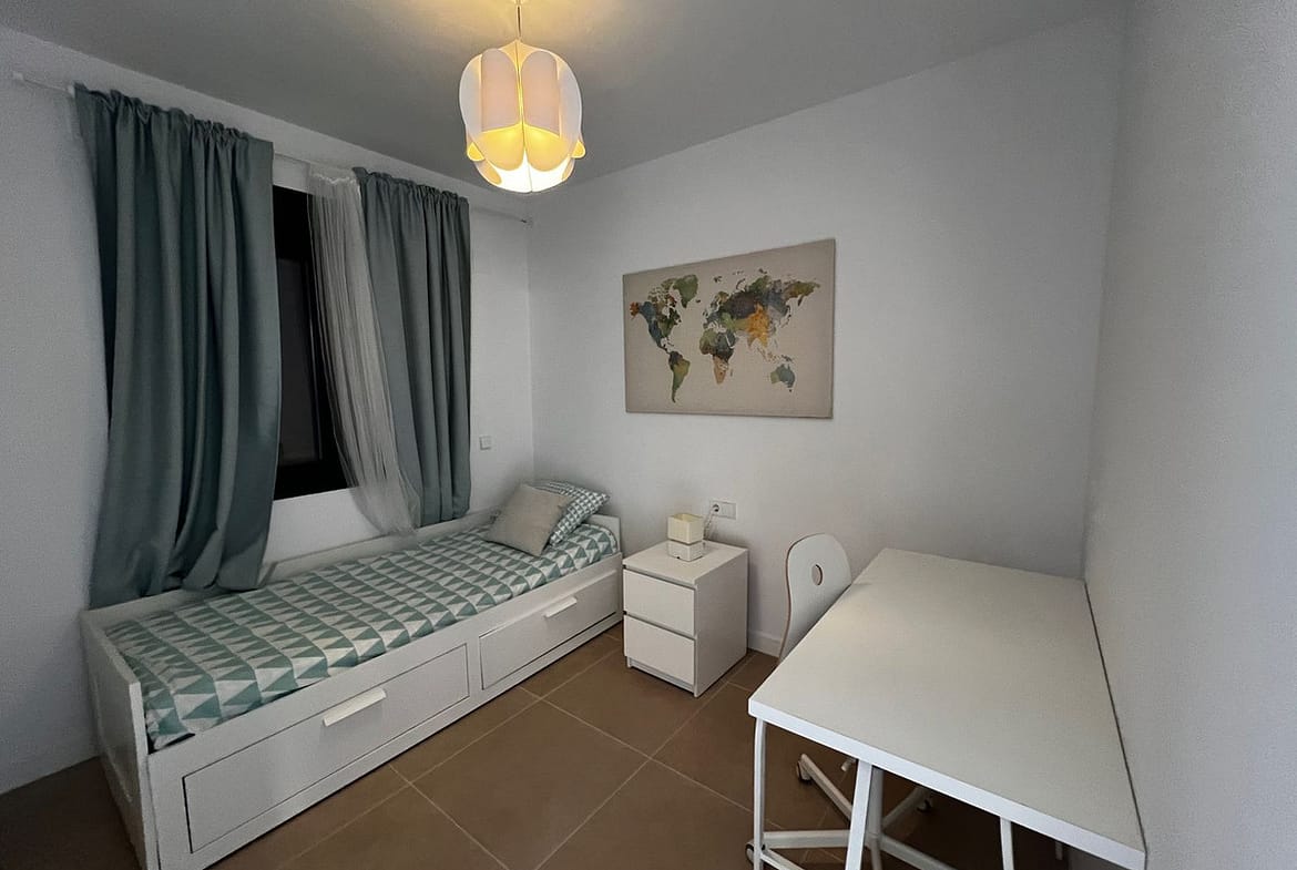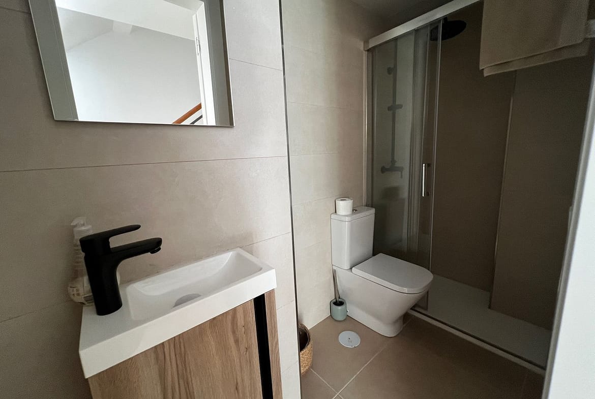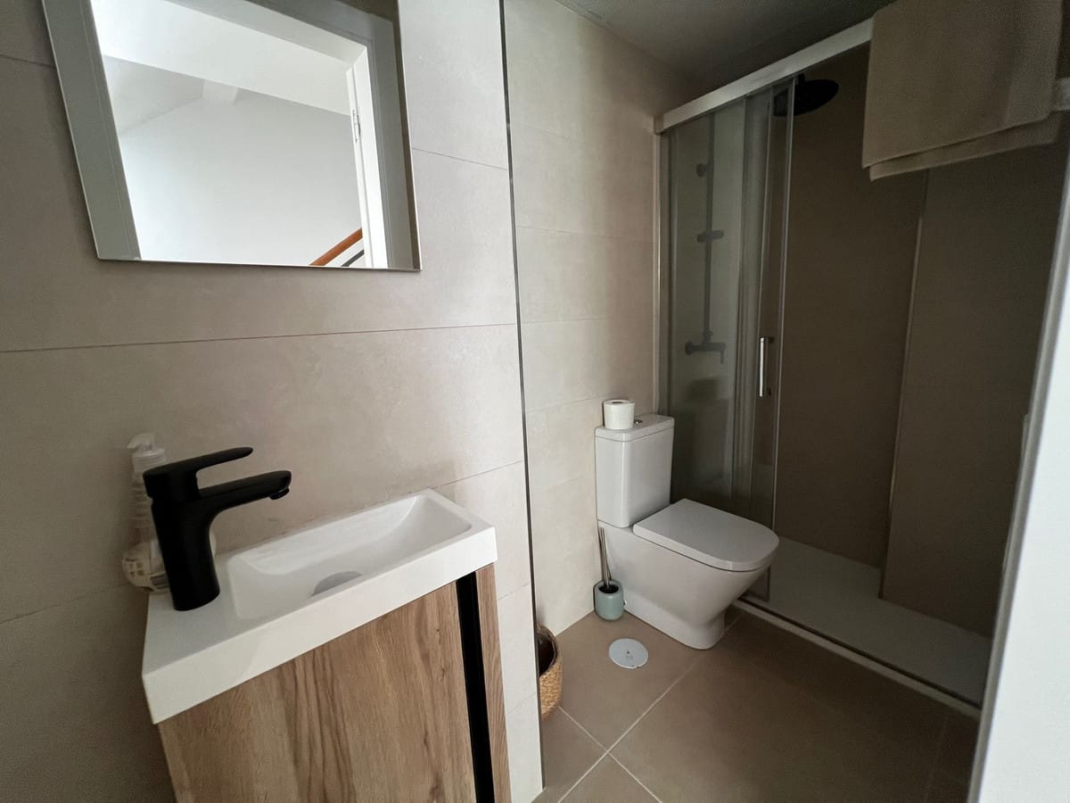 Upstairs you will find the master bedroom with en suite shower room and a little terrace, and the third bedroom again with en suite bathroom.