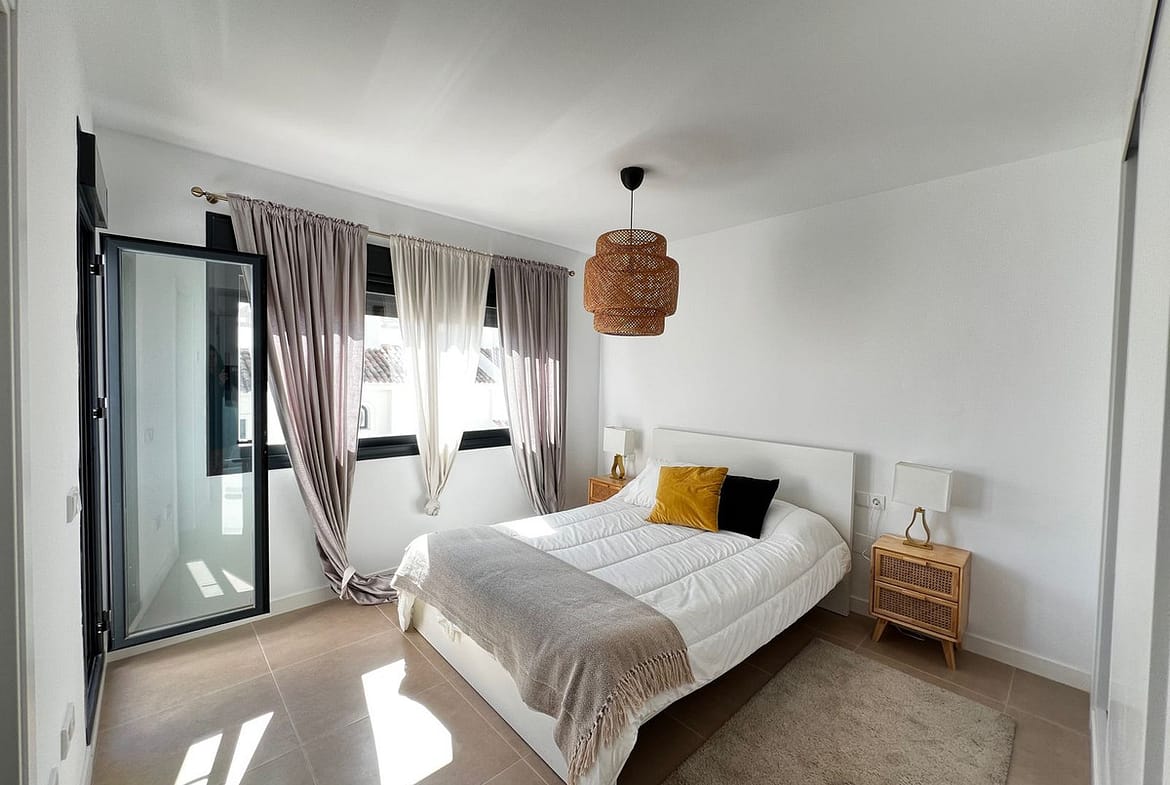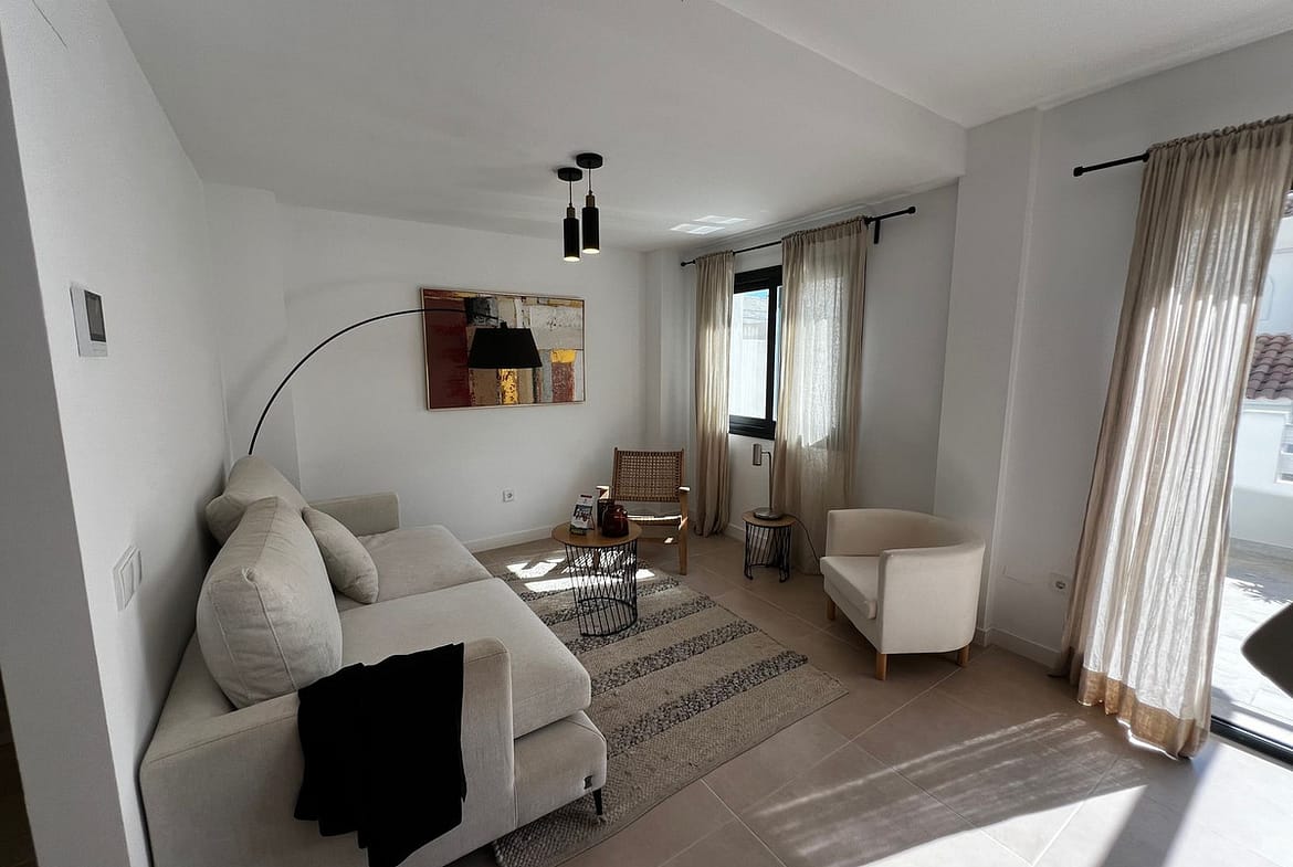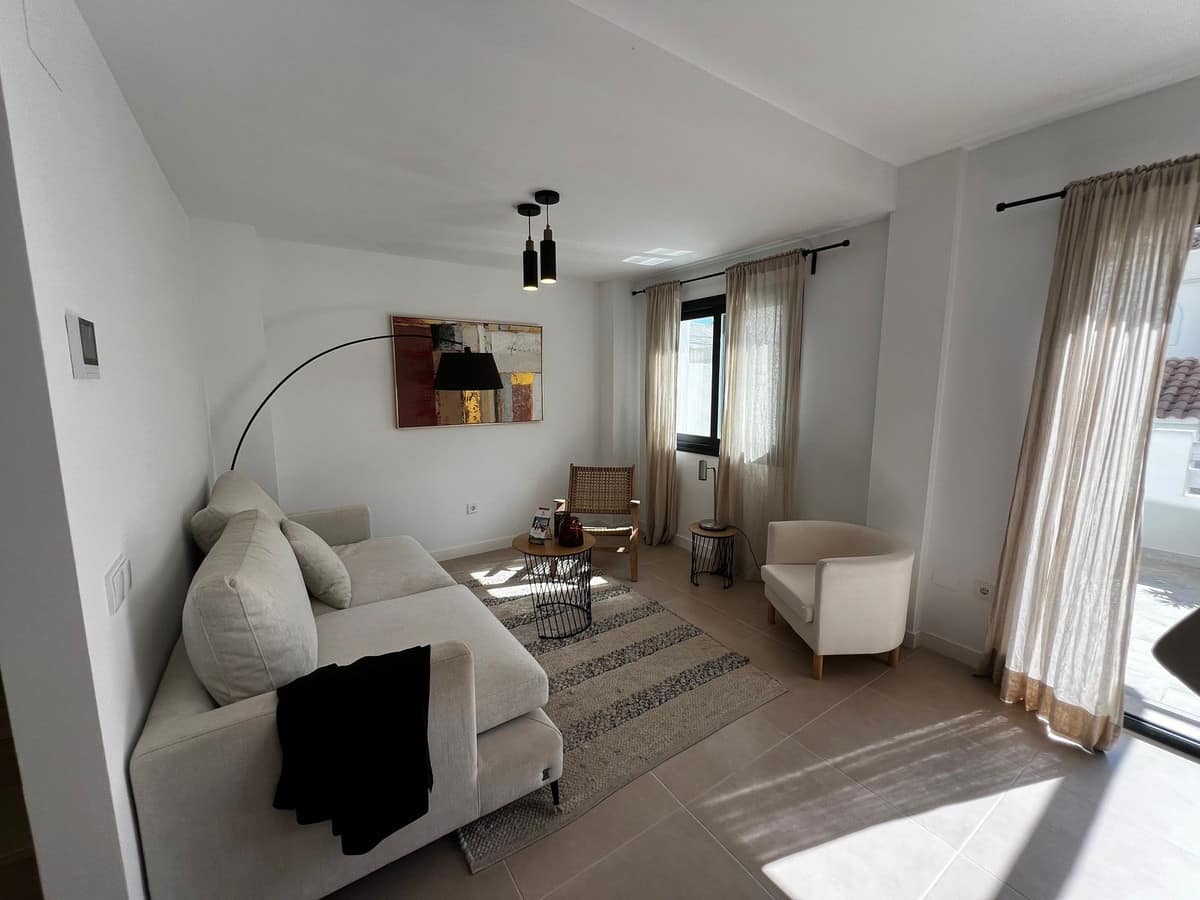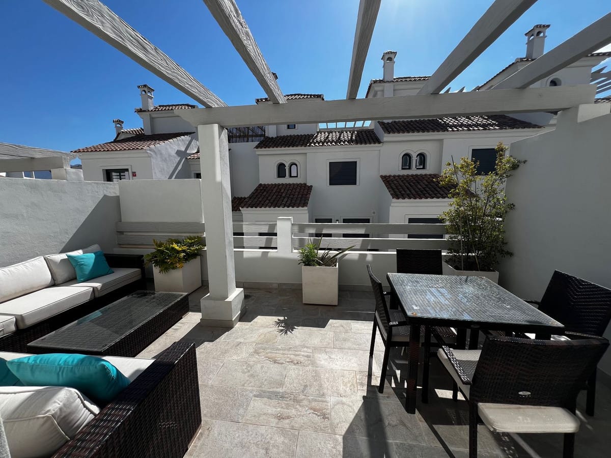 A brand new 3 bedroom 3 bathroom townhouse with large basement area. A lovely property located in El Campanario which is famed for its wonderful golf course and club house where you will find a super restaurant, gym, indoor and outdoor pool and spa area along with a hairdresser and beauticians. The development has a salt water pool and an additional pool for children. The house is lovely and bright. There is a large open plan living and dining room with american style kitchen. Doors lead out onto a large East facing terrace where you will have early to mid day sun. On this level there is another terrace at the front that is extremely large in size with a pergola and nice seating area and is West facing where you will get afternoon and evening sun. There is a guest bedroom and shower room on this level.